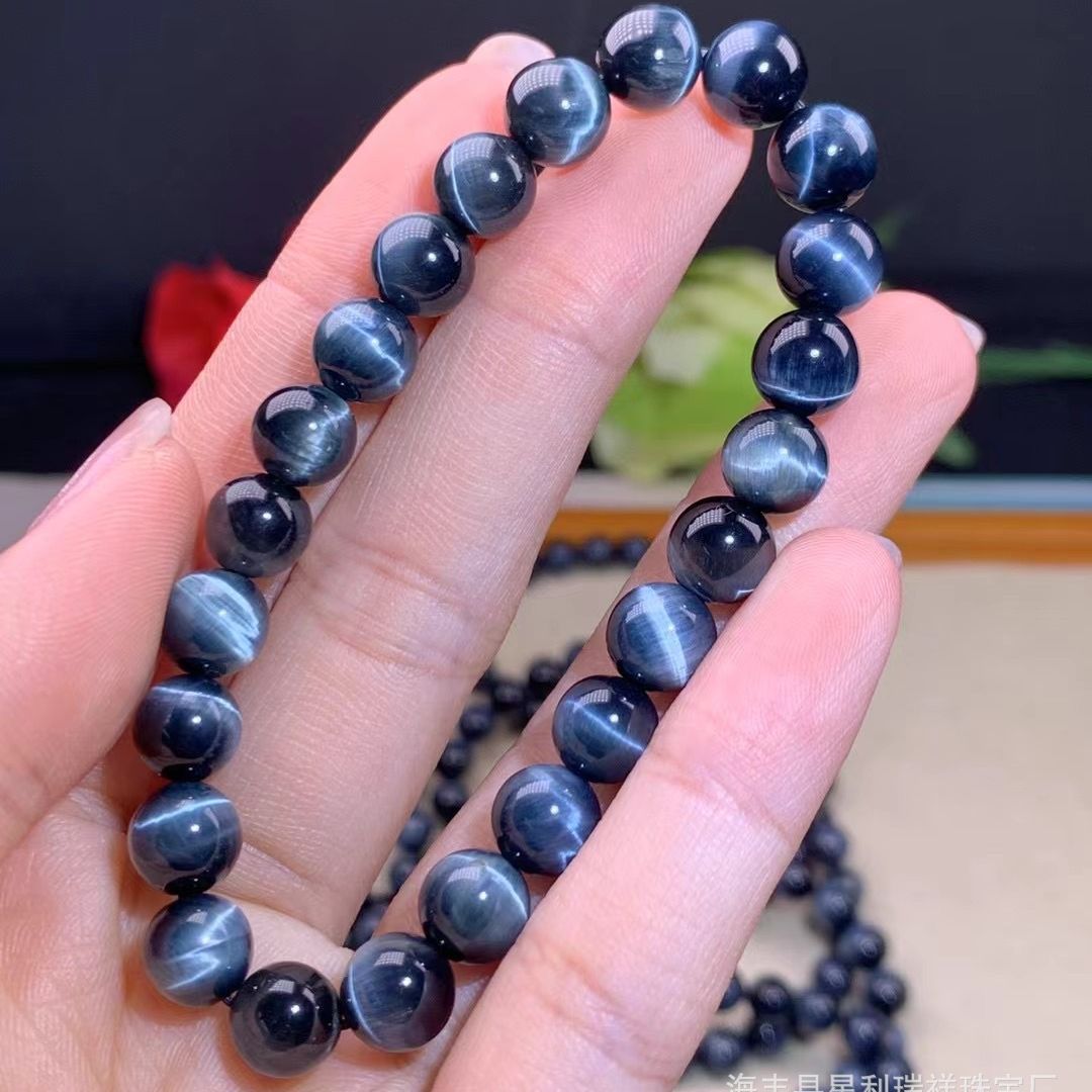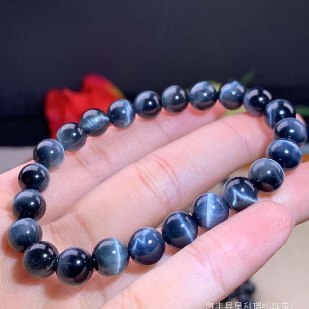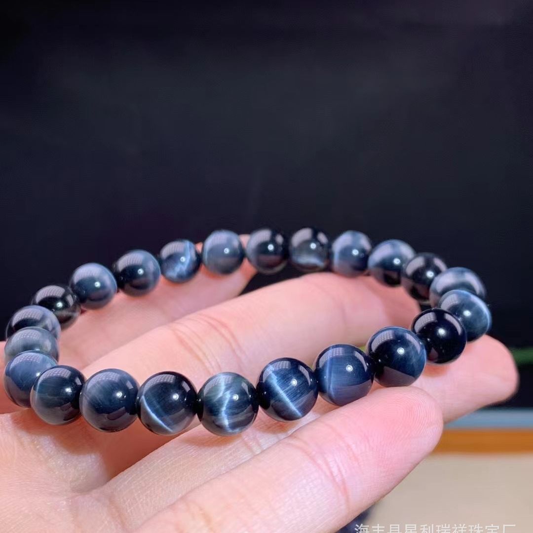 Natural Tiger Stone Blue Tiger Eye Stone lightning Tiger beads bracelet lightning pattern clear cat eye crystal round beads single Circle Bracelet