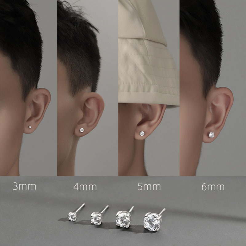 s925 sterling silver rhinestone stud earrings ins fashionable elegant simple ear bone stud men's stackable ear piercing earrings