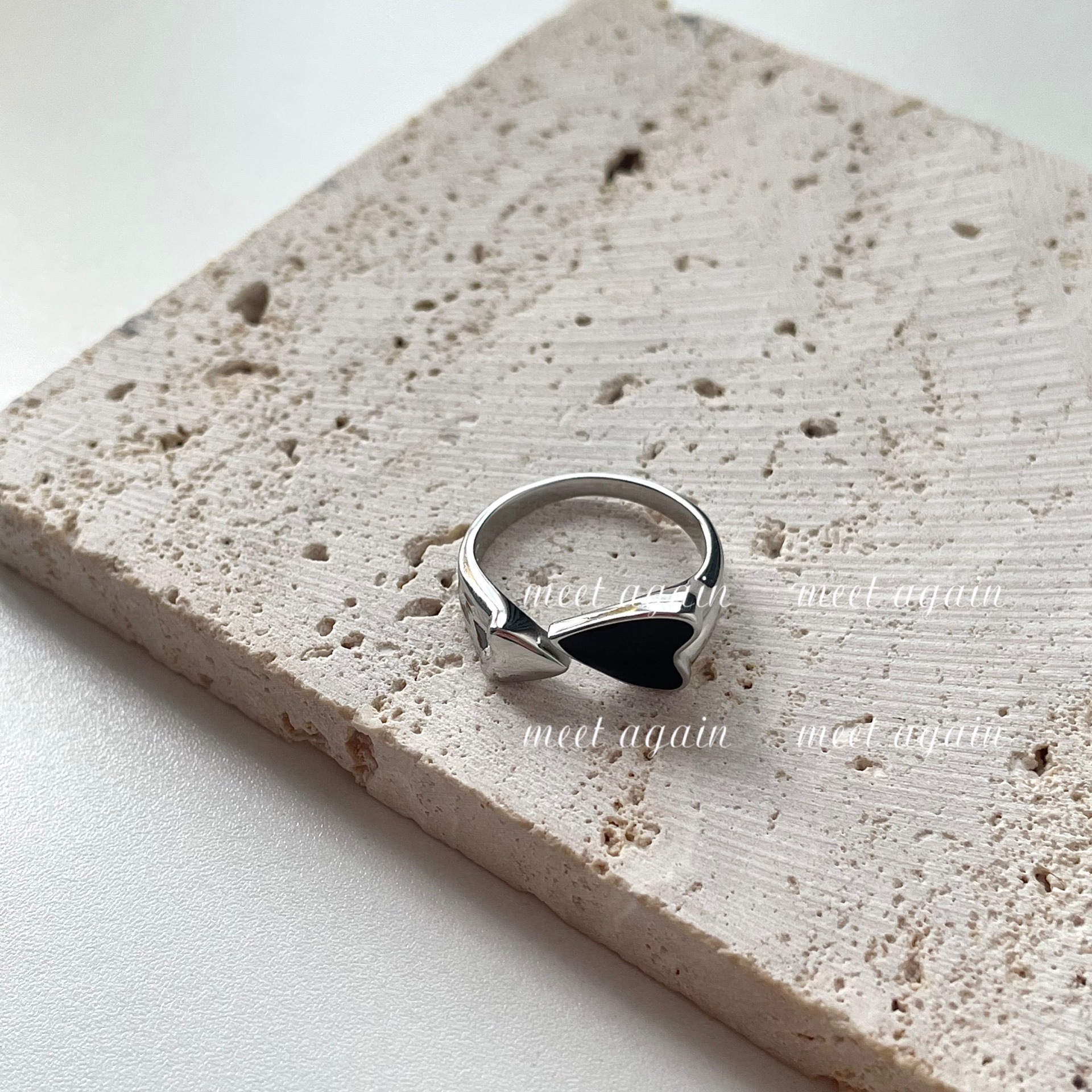 South Korea simple black love ring sweet cool style ins design sense niche heart-shaped peach heart index finger ring accessories