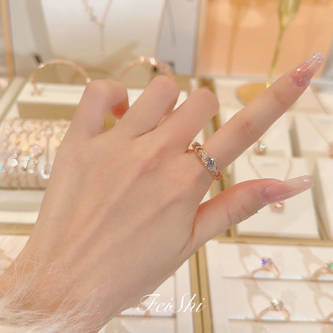 Ring wheat ear temperament goddess live ring open champagne live broadcast hot sale 0.5 karat gift for girlfriend