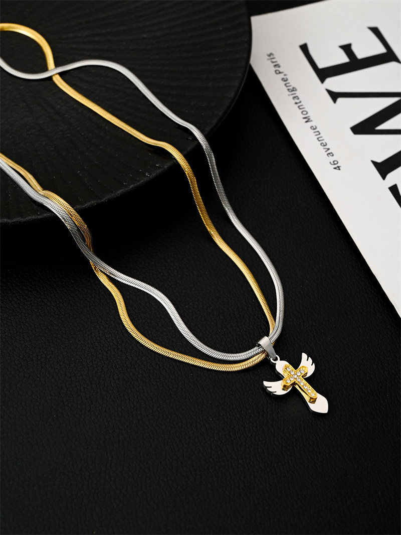 Color: Xl258--small wings cross necklace 45+ 5cm
