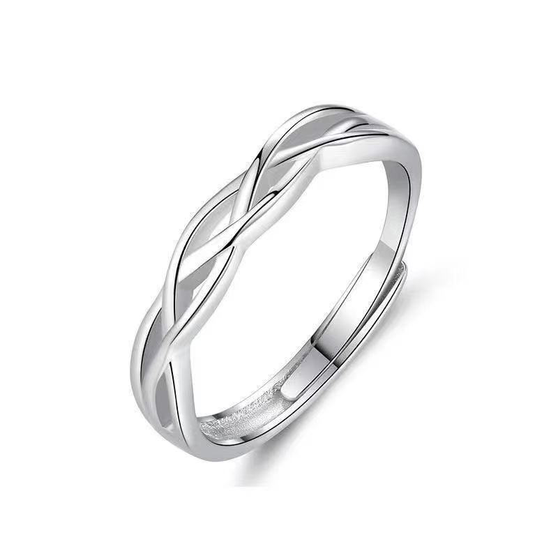Blue Silk winding men's ring simple all-match interwoven ring trendy men's single hip hop tail ring silver-plated open ring