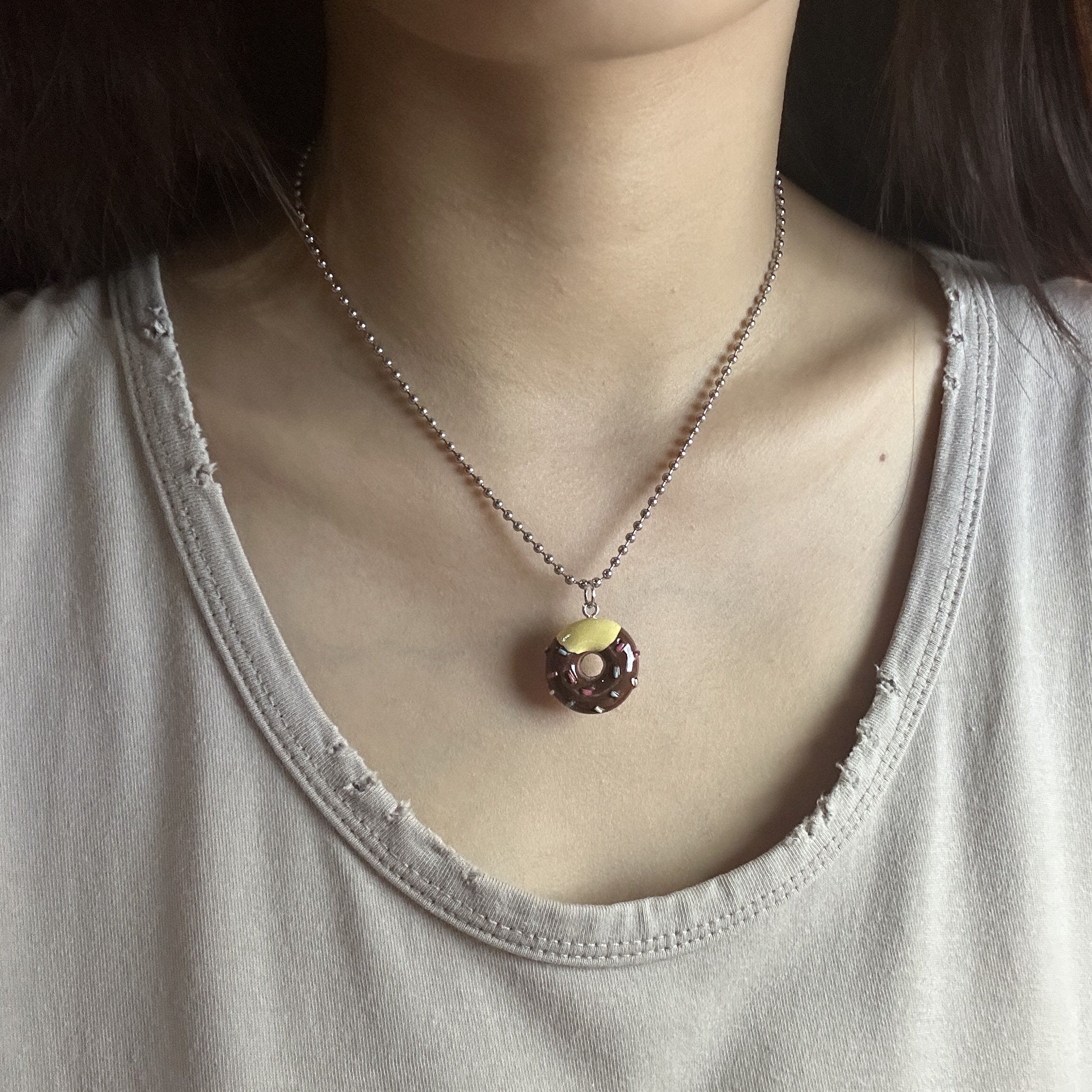 Dopamine small clear donut clavicle chain round necklace sweater accessories pendant necklace foreign trade donut