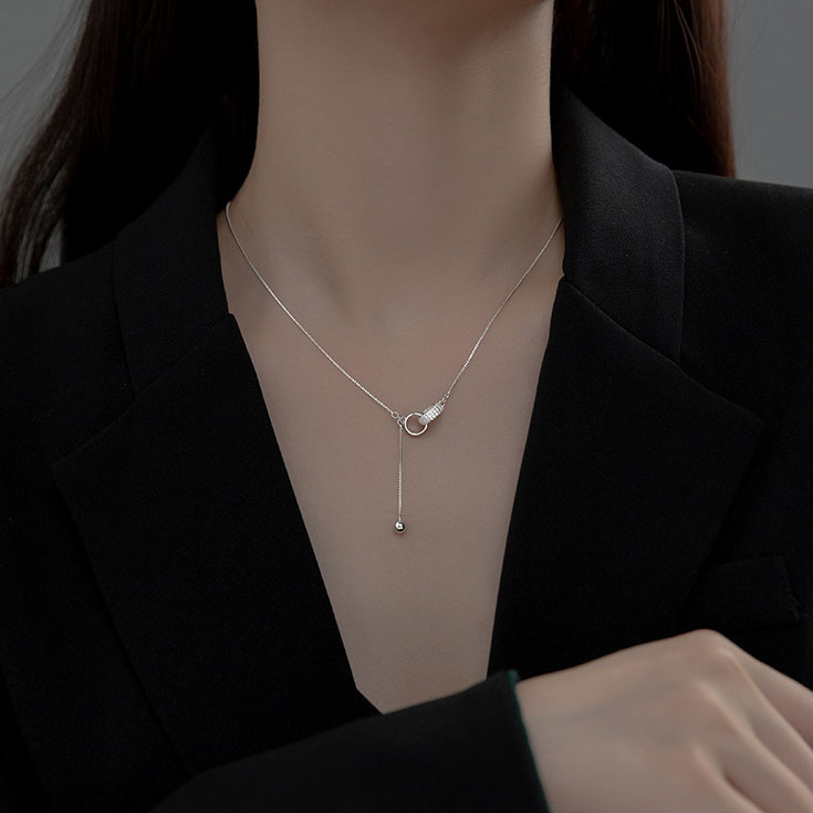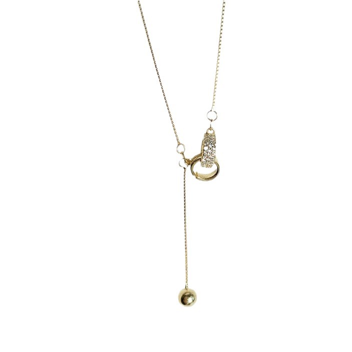 Cross-Border Autumn and Summer New Round Bead Sparkling Diamond Double Ring Necklace Niche Accessible Luxury Design Fashion Tassel Ins Style Clavicle Chain