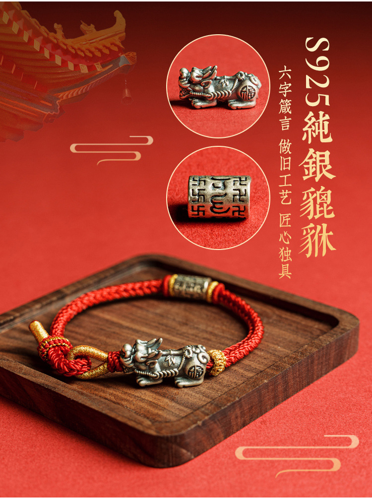 Color: Pure 925 silver pixiu + six-character auspicious beads