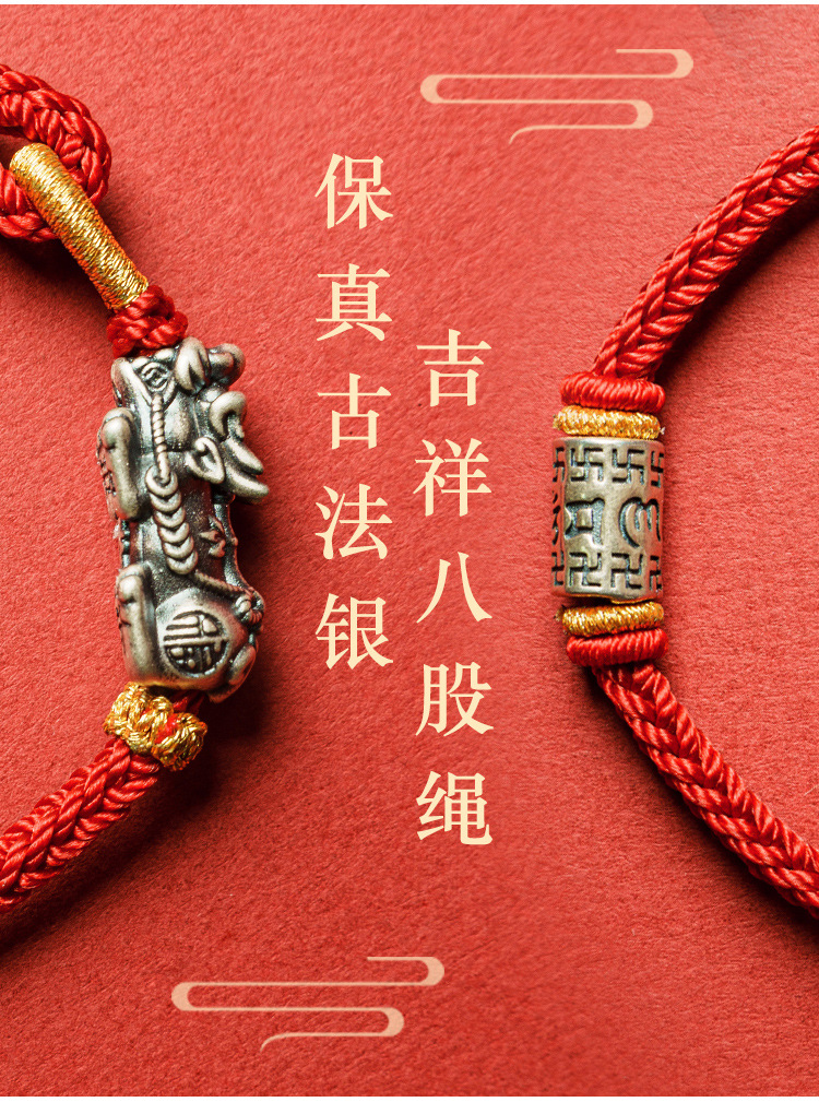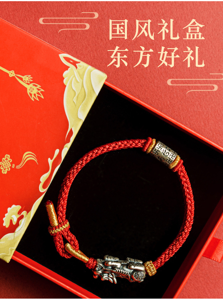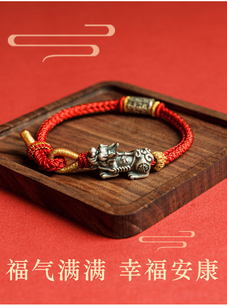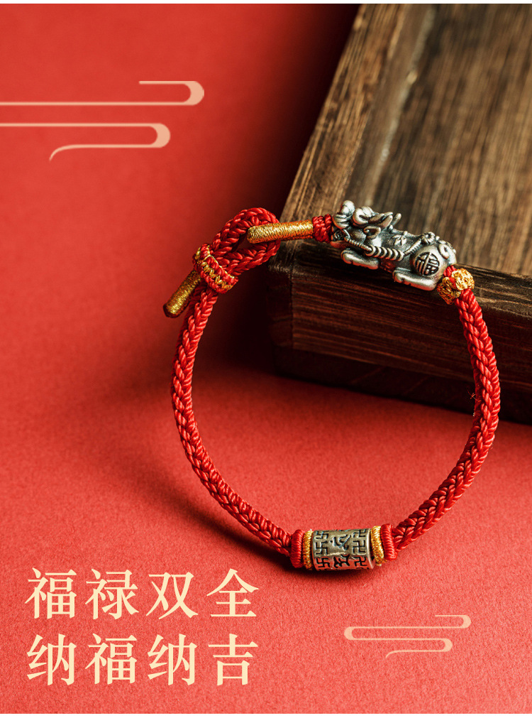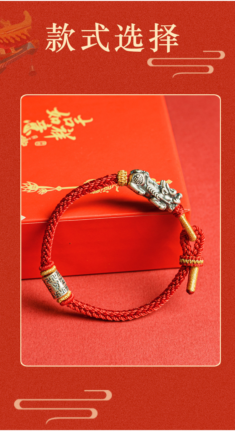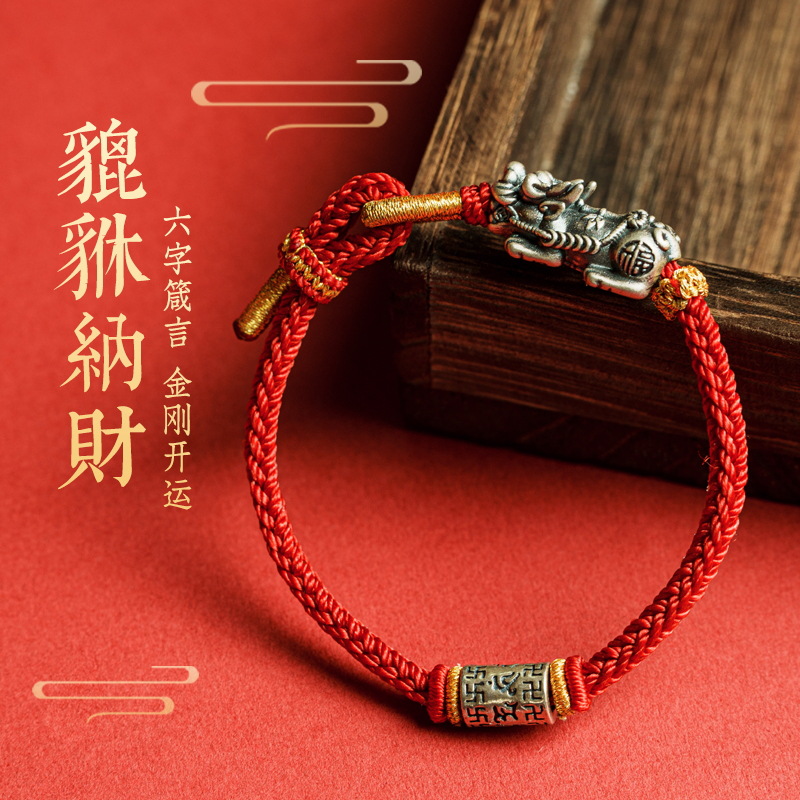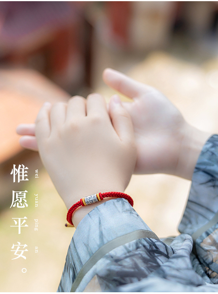 S925 silver bracelet, six-word proverb, adjustable birth year safety red rope, male bracelet, female jewelry
