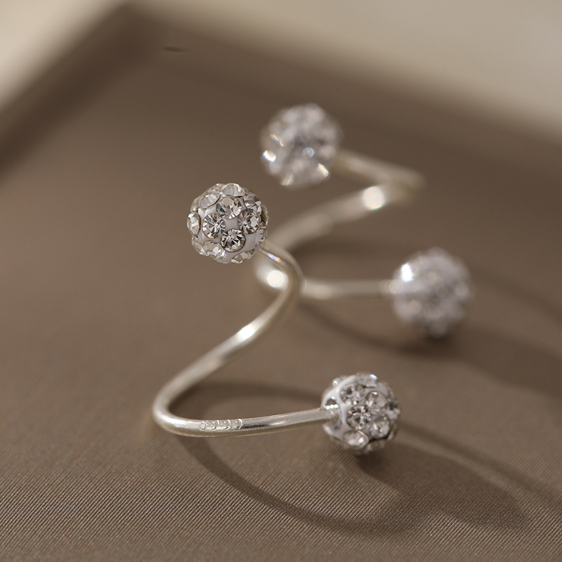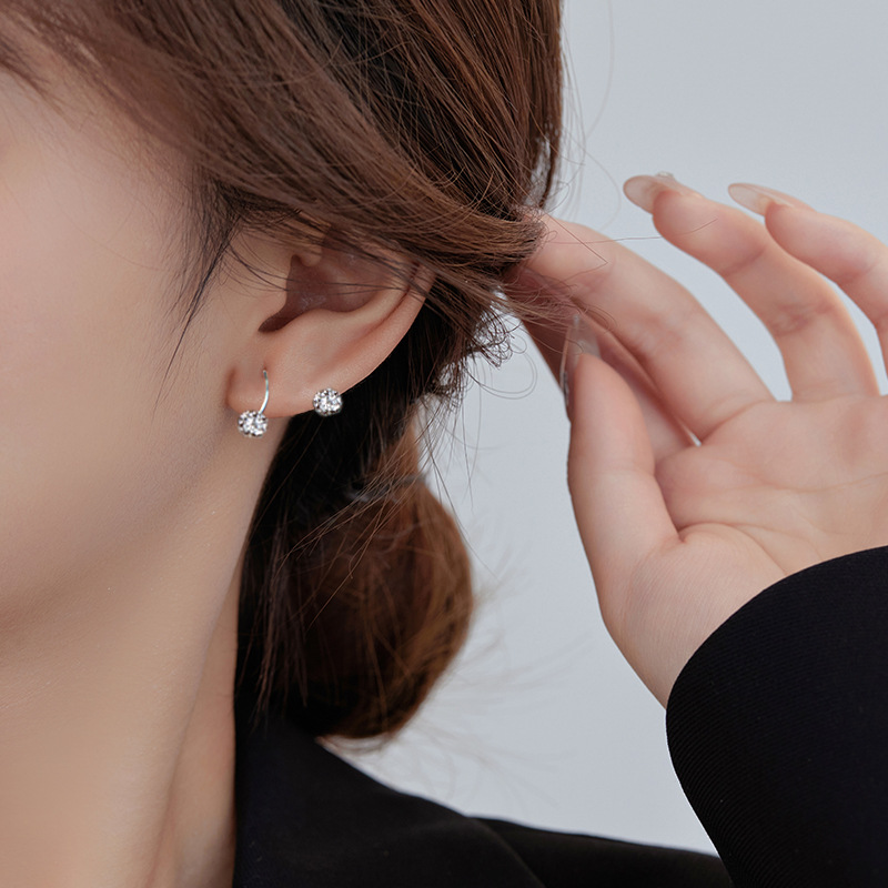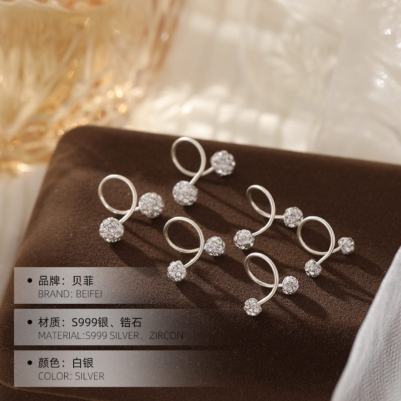 S999 sterling silver ultra-flash zircon earrings women's high-grade delicate screw buckle double head Shambhala ear bone stud earrings