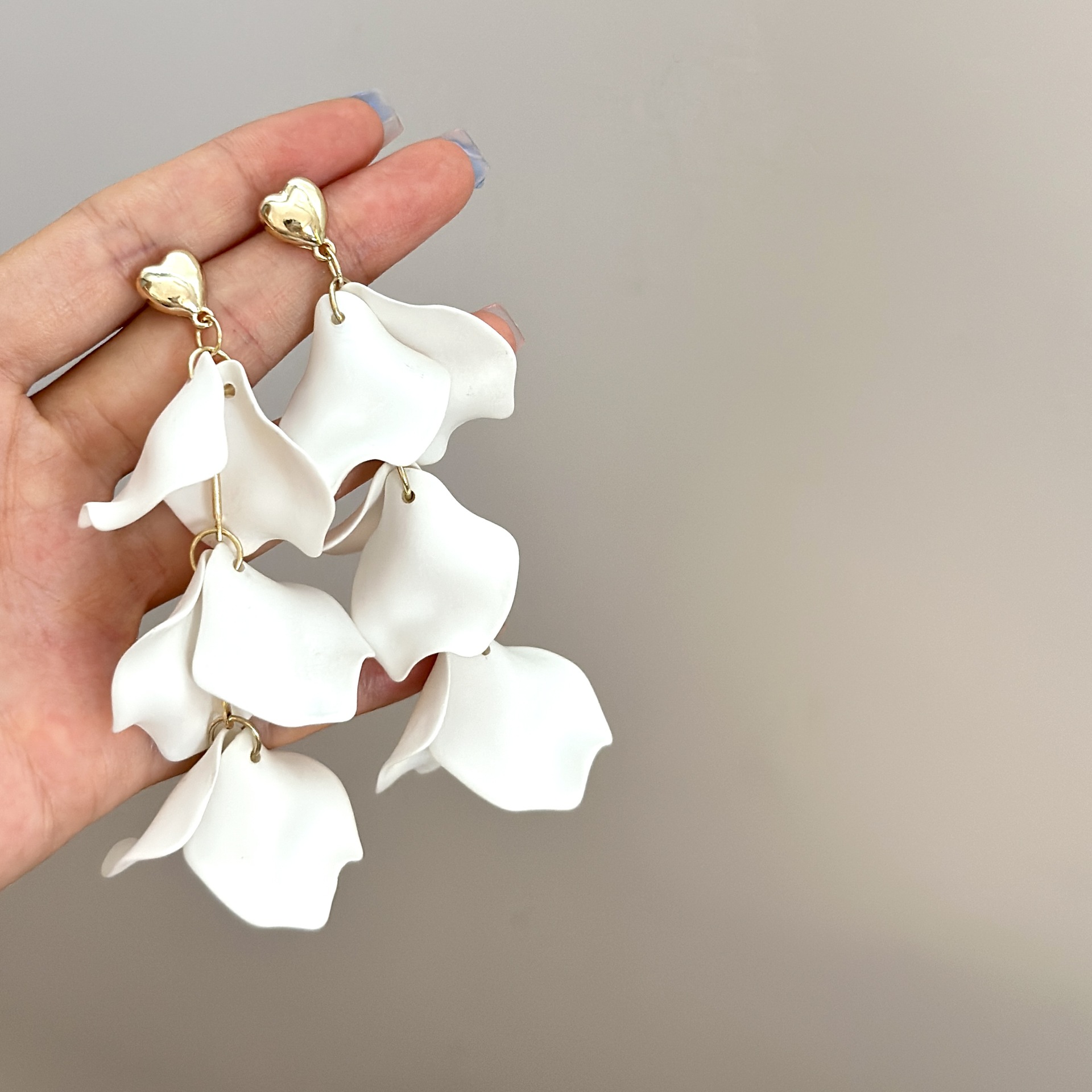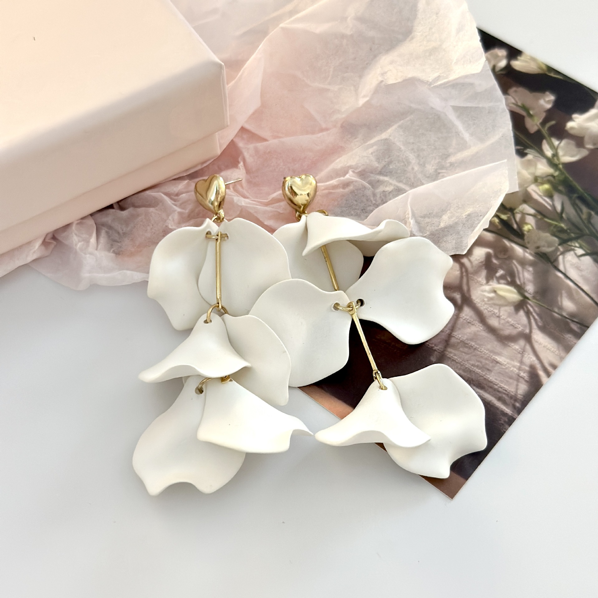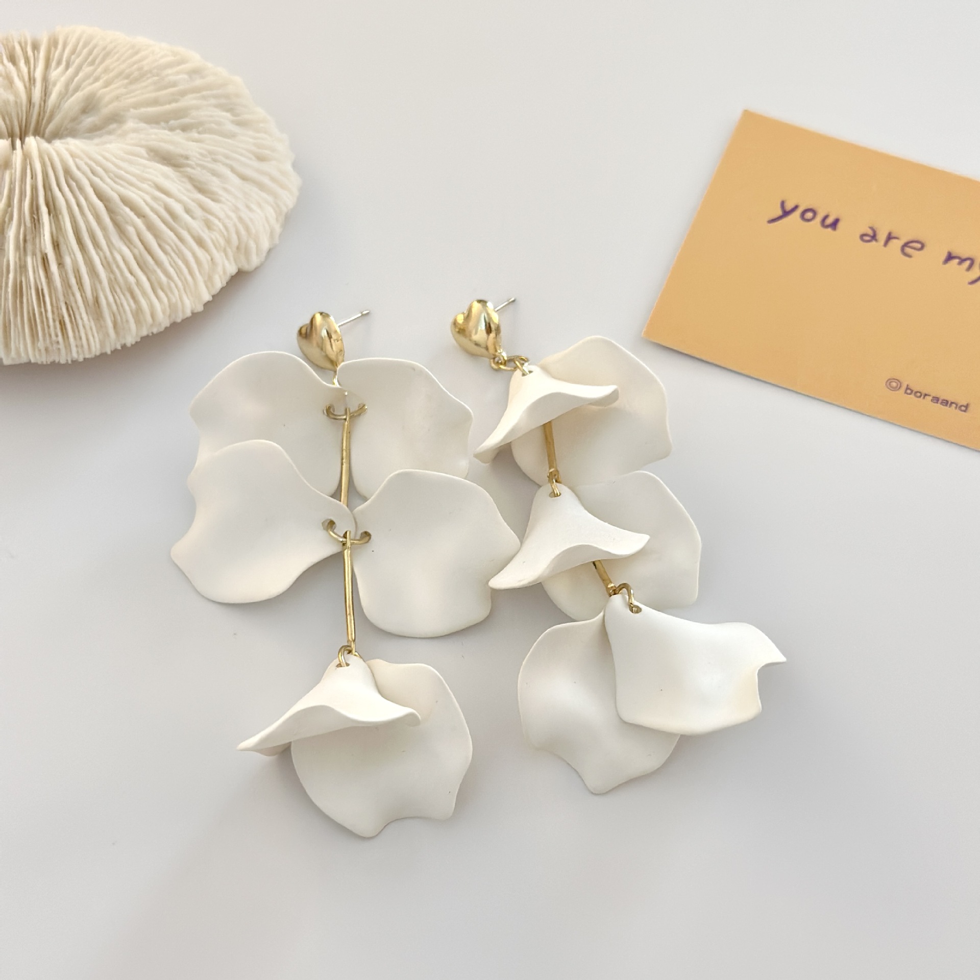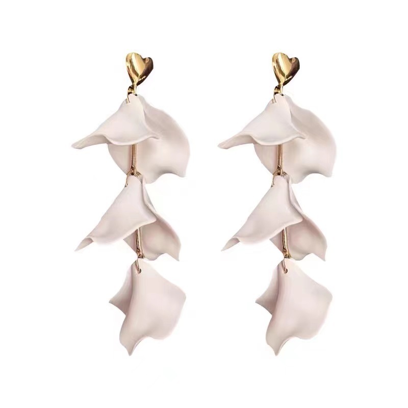 Super fairy French style white exaggerated shell petals high-grade retro earrings female earrings niche design lovely earrings