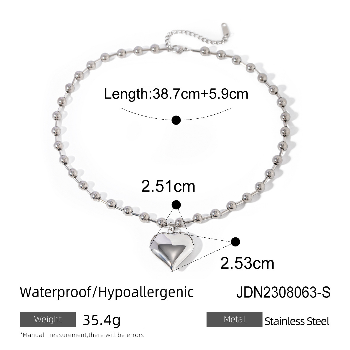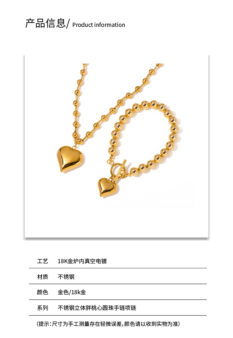 designer European and American three-dimensional peach heart pendant round bead necklace stainless steel gold Love necklace high-grade female