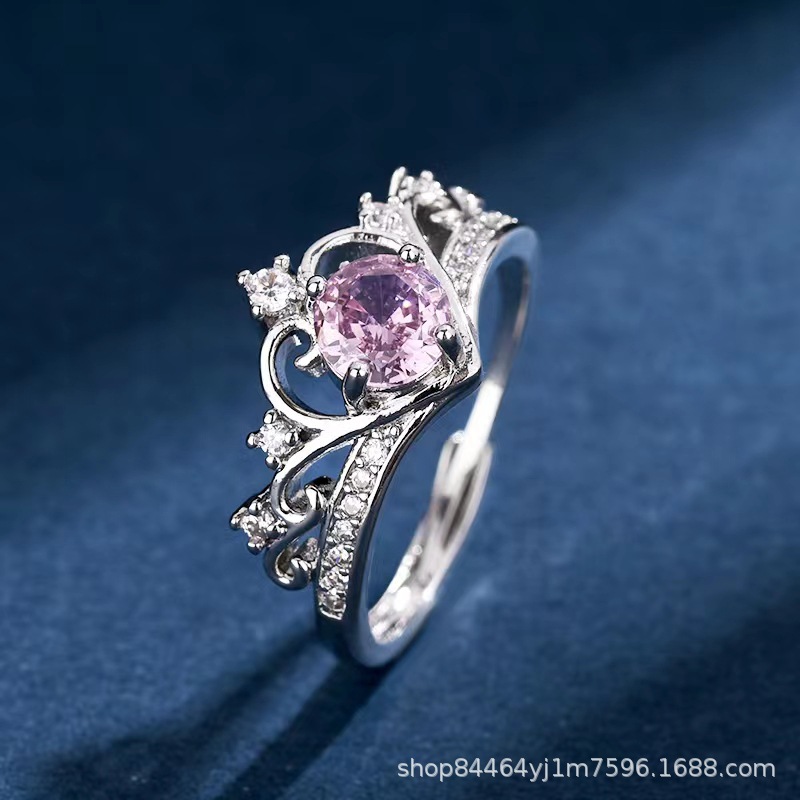 Cross-border Crown goddess micro-inlaid white pink purple yellow ring open ring female new ring zircon female ring wholesale