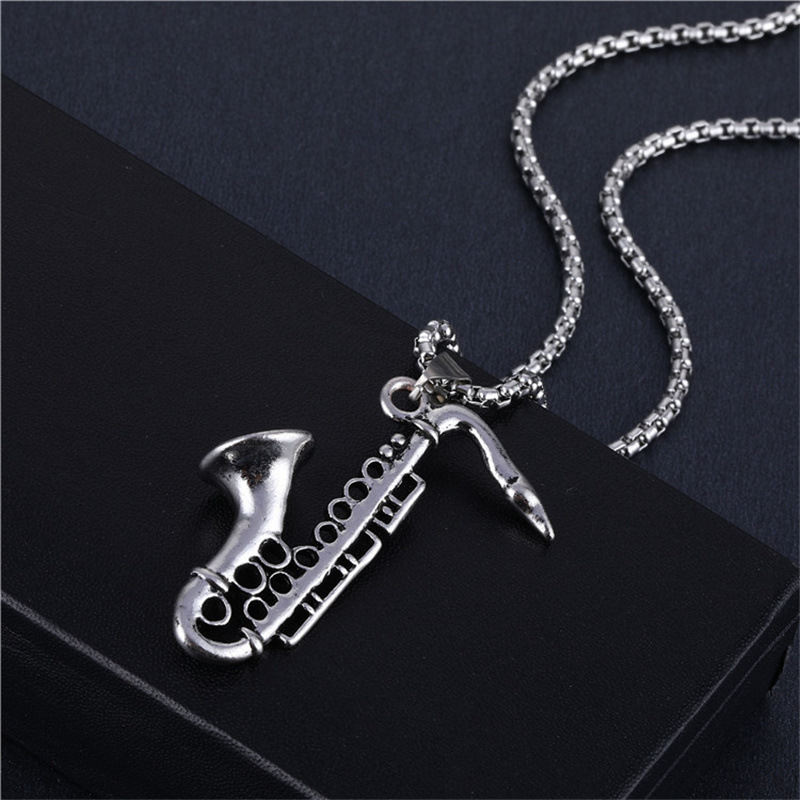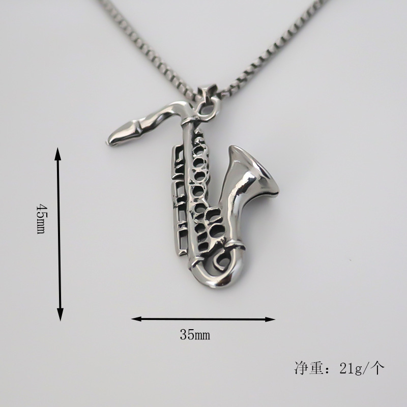 Fashion new stainless steel necklace personalized creative alloy saxophone pendant Street men and women rap Accessories Wholesale