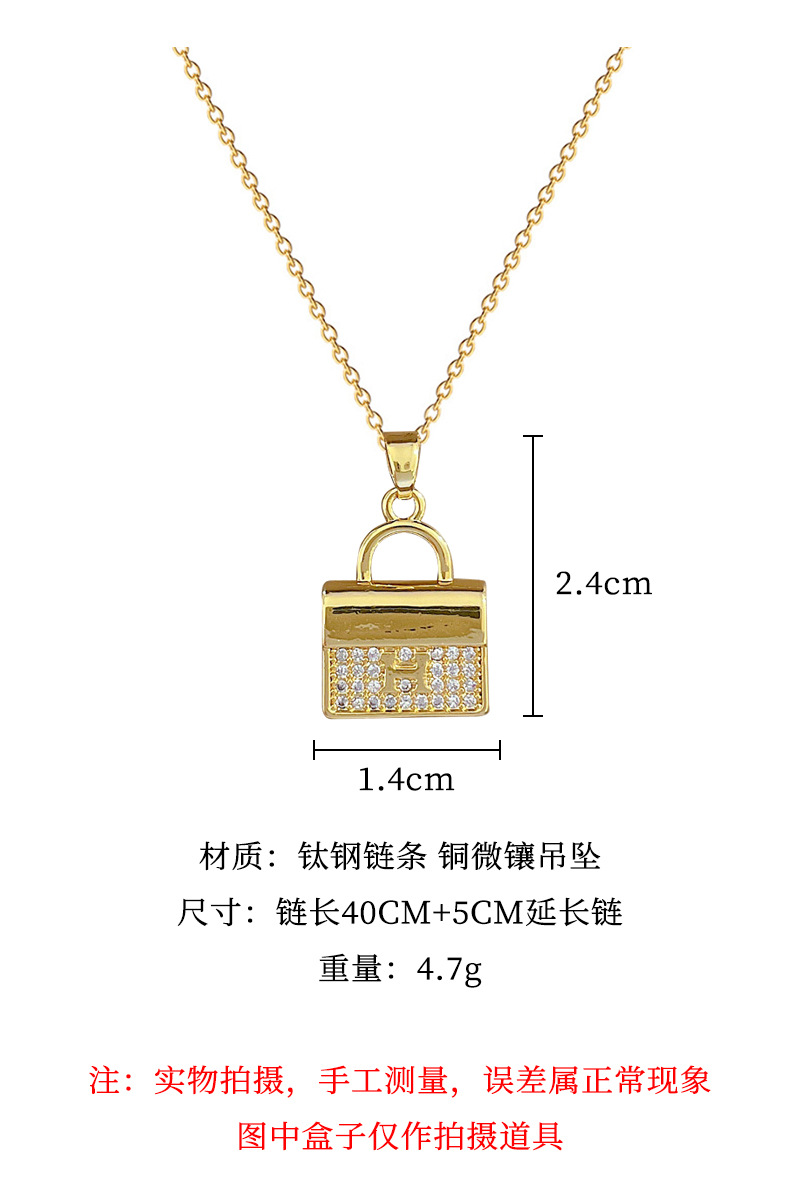 [Titanium Steel] H Bag Light Luxury Elegant Gorgeous Diamond Necklace Women's Internet Celebrity All-match Clavicle Chain Titanium Steel Chain