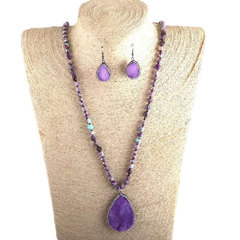 Cross-Border Popular Bohemian Jewelry Set Natural Stone Glass Necklace Crystal Cluster Water Drop Pendant Necklace Earrings