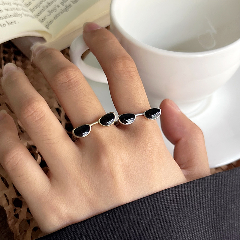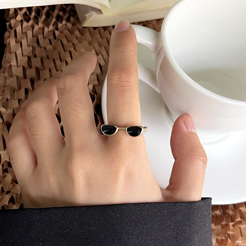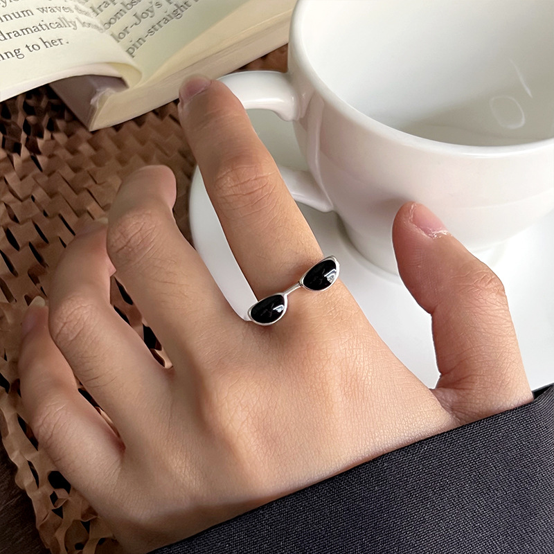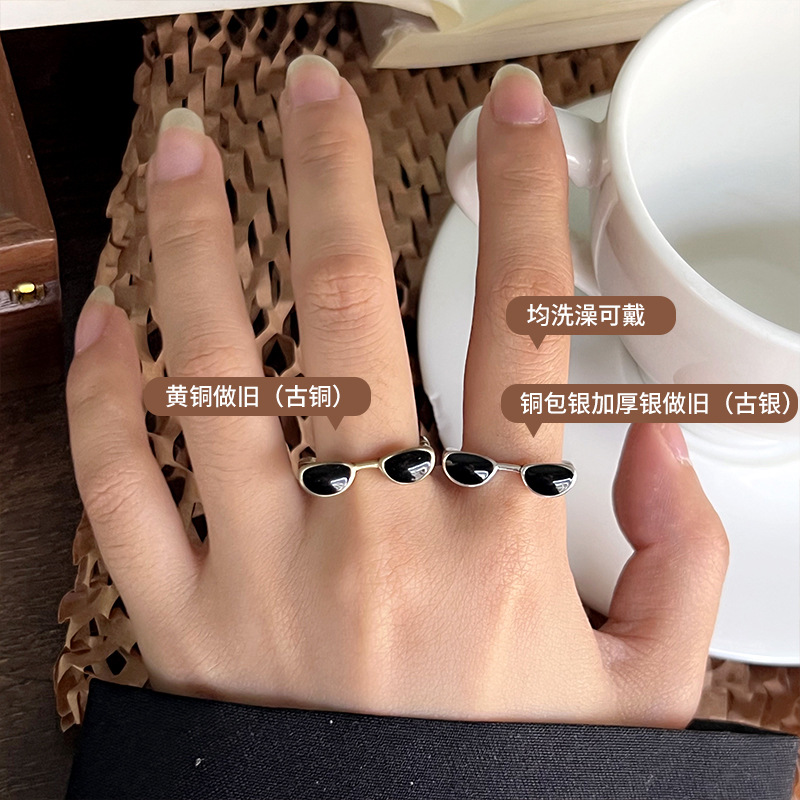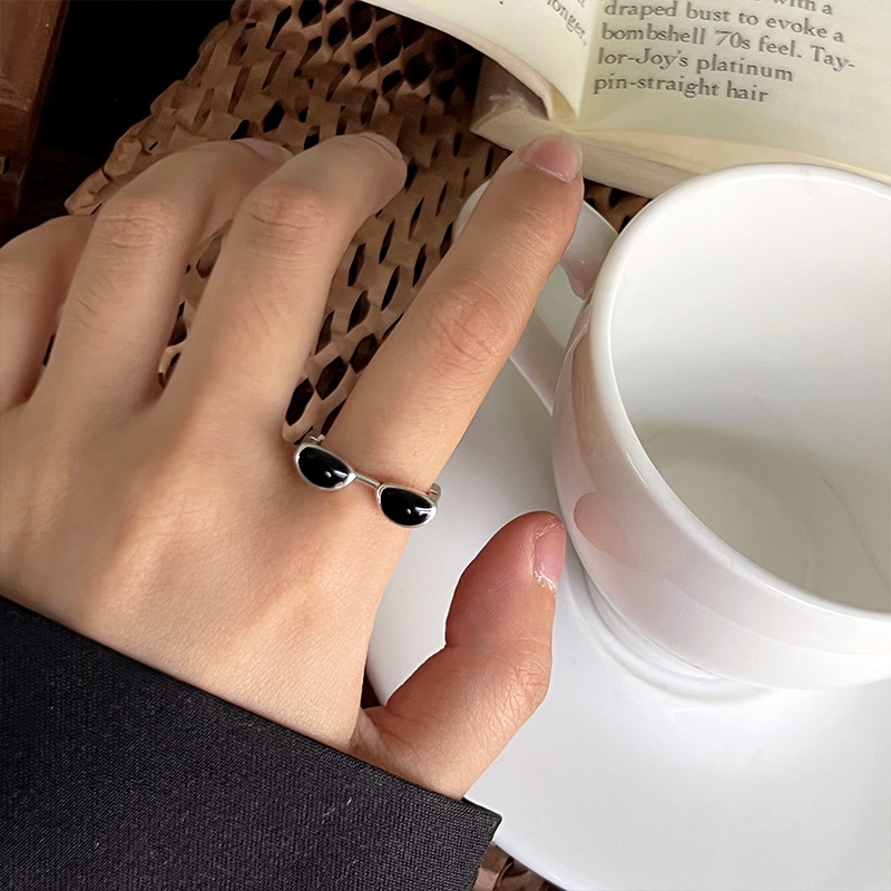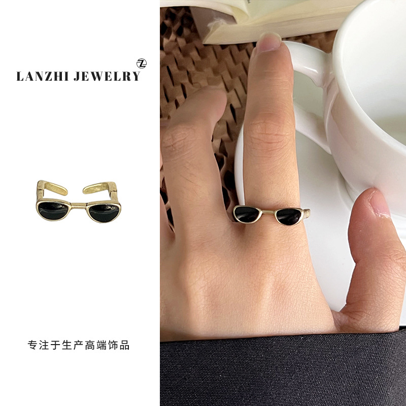 Lan zhi cool handsome glasses do not fade color jewelry men's quirky hip hop oil drop bronze niche 925 sterling silver ring women's ins
