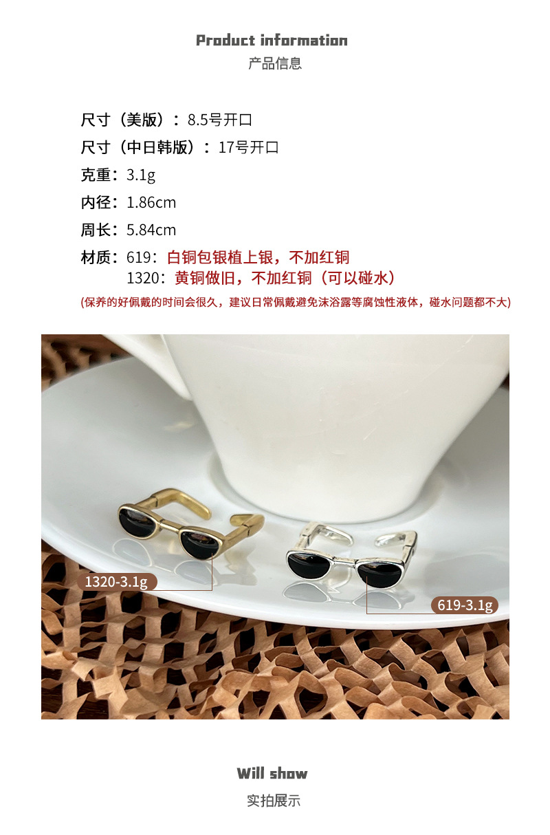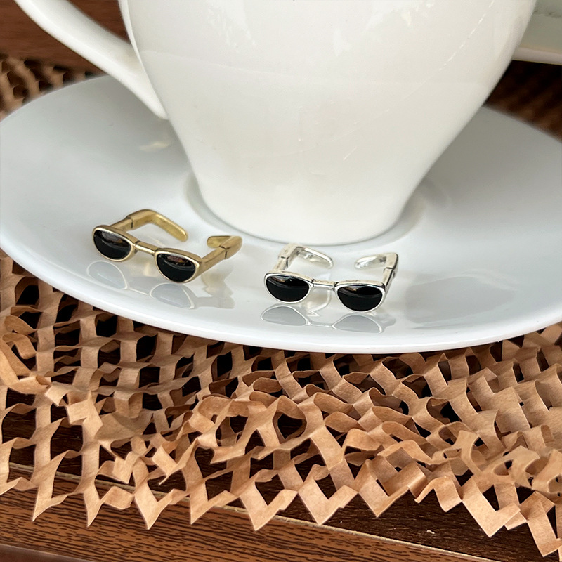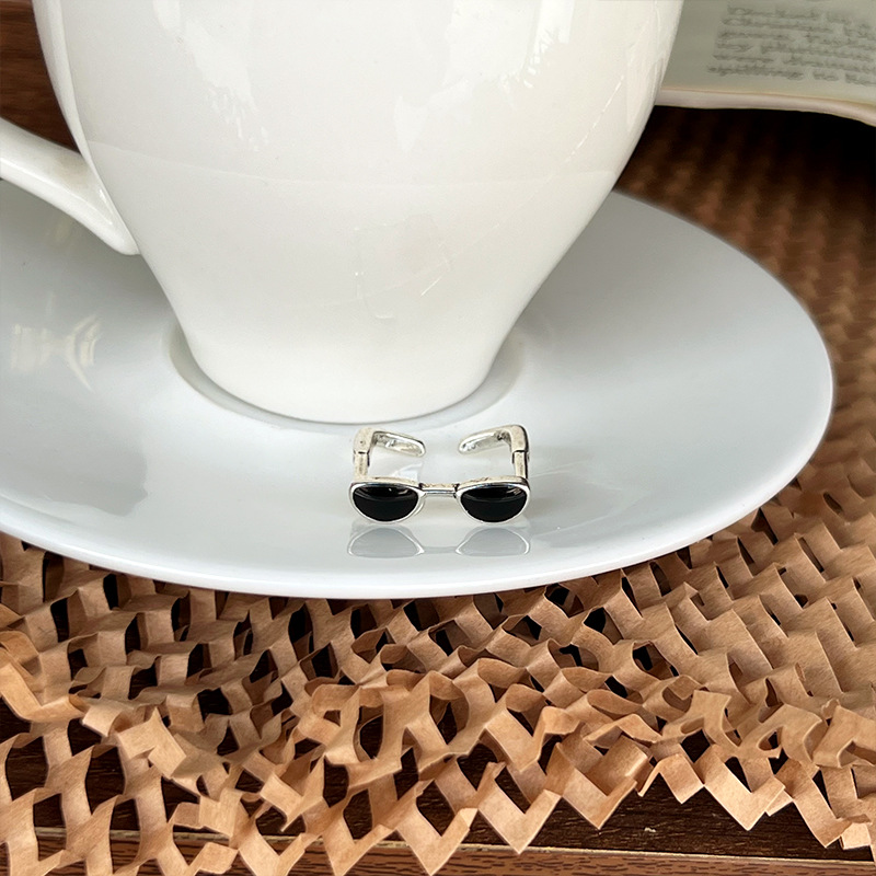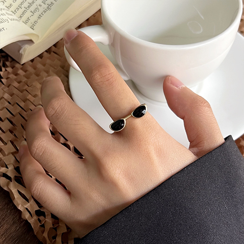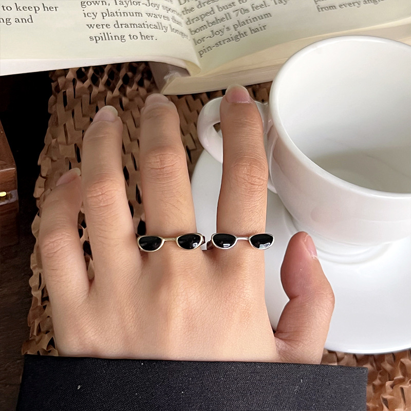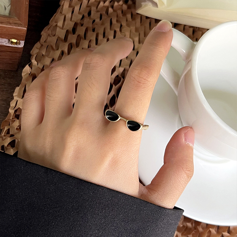 Lan zhi cool handsome glasses do not fade color jewelry men's quirky hip hop oil drop bronze niche 925 sterling silver ring women's ins