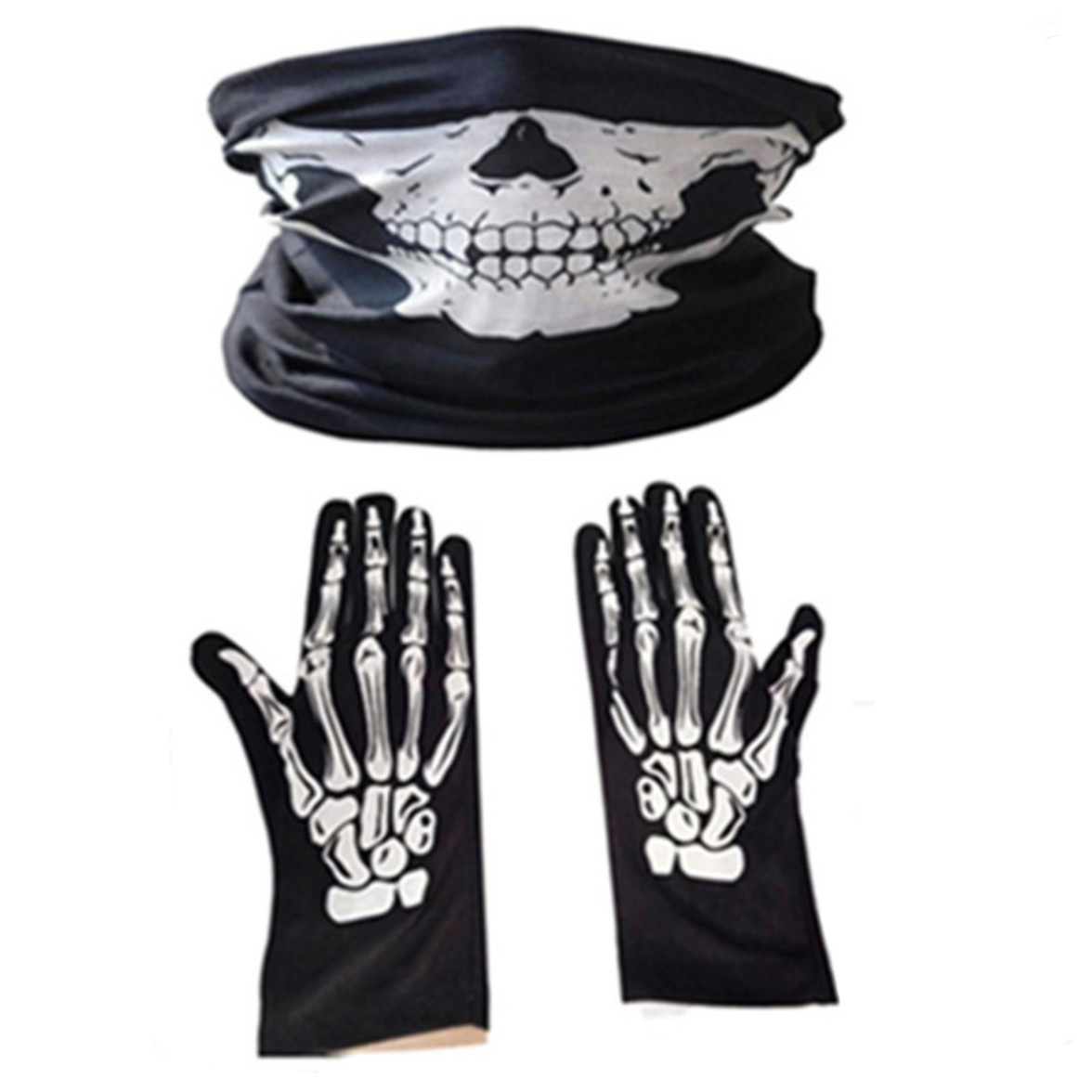 Halloween Black Horror Skeleton Varied Scarf Creative Rose Skull Death Skeleton Ghost Gloves Scarf
