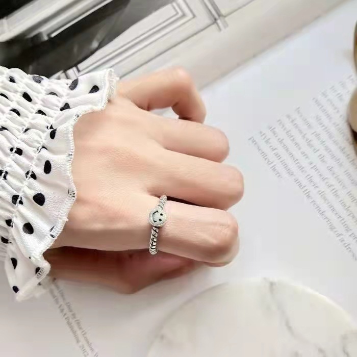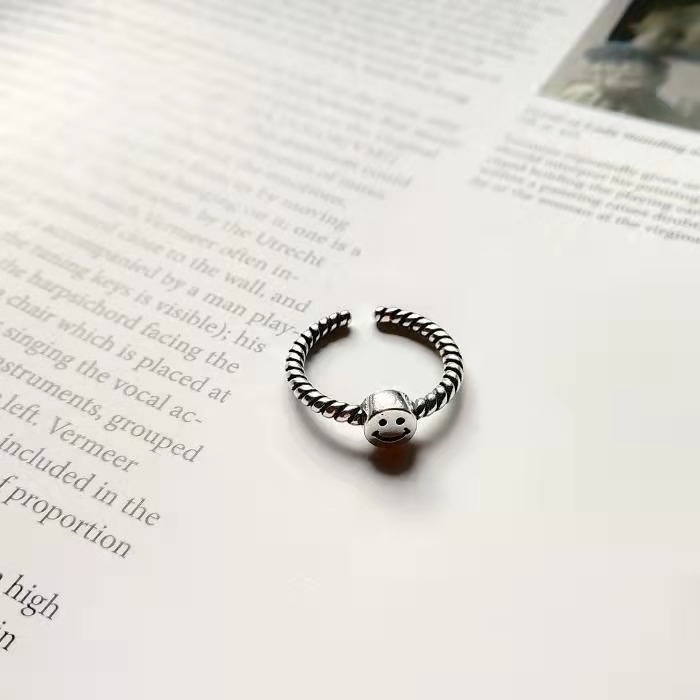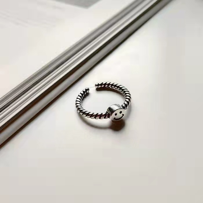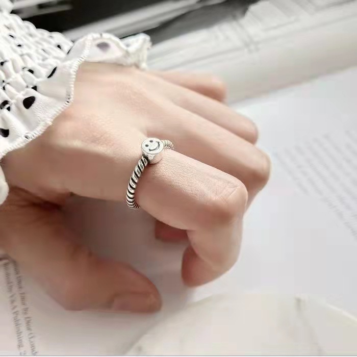 Fashionable and Simple Smiley Face Ring for Women Ins Non-Fading High-Value Niche Design Retro Ring Adjustable