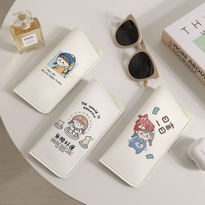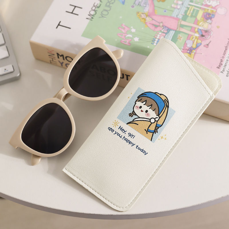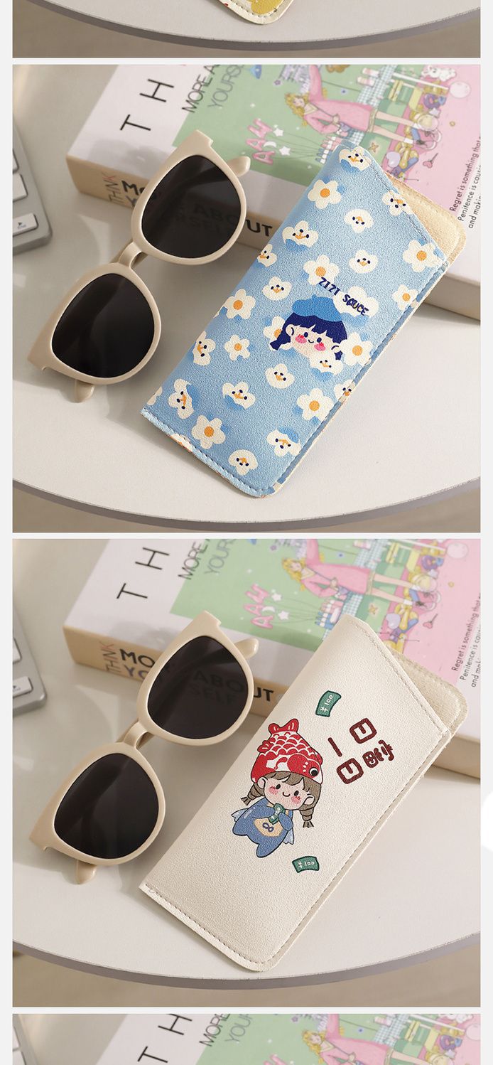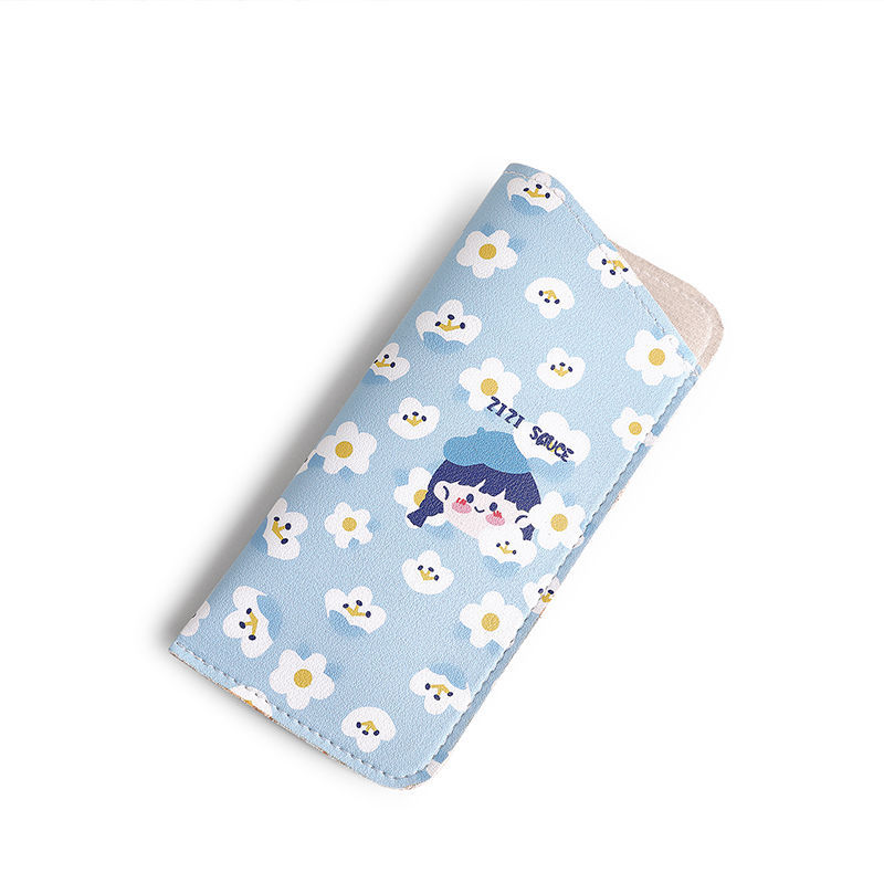 Cute blue hat girl original glasses storage bag sunglasses sunglasses storage box real soft leather portable cartoon pressure-resistant