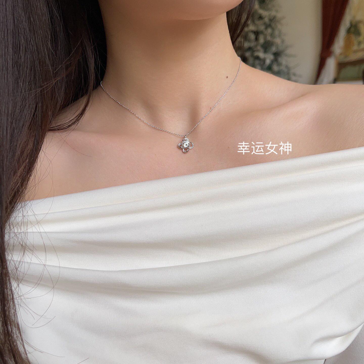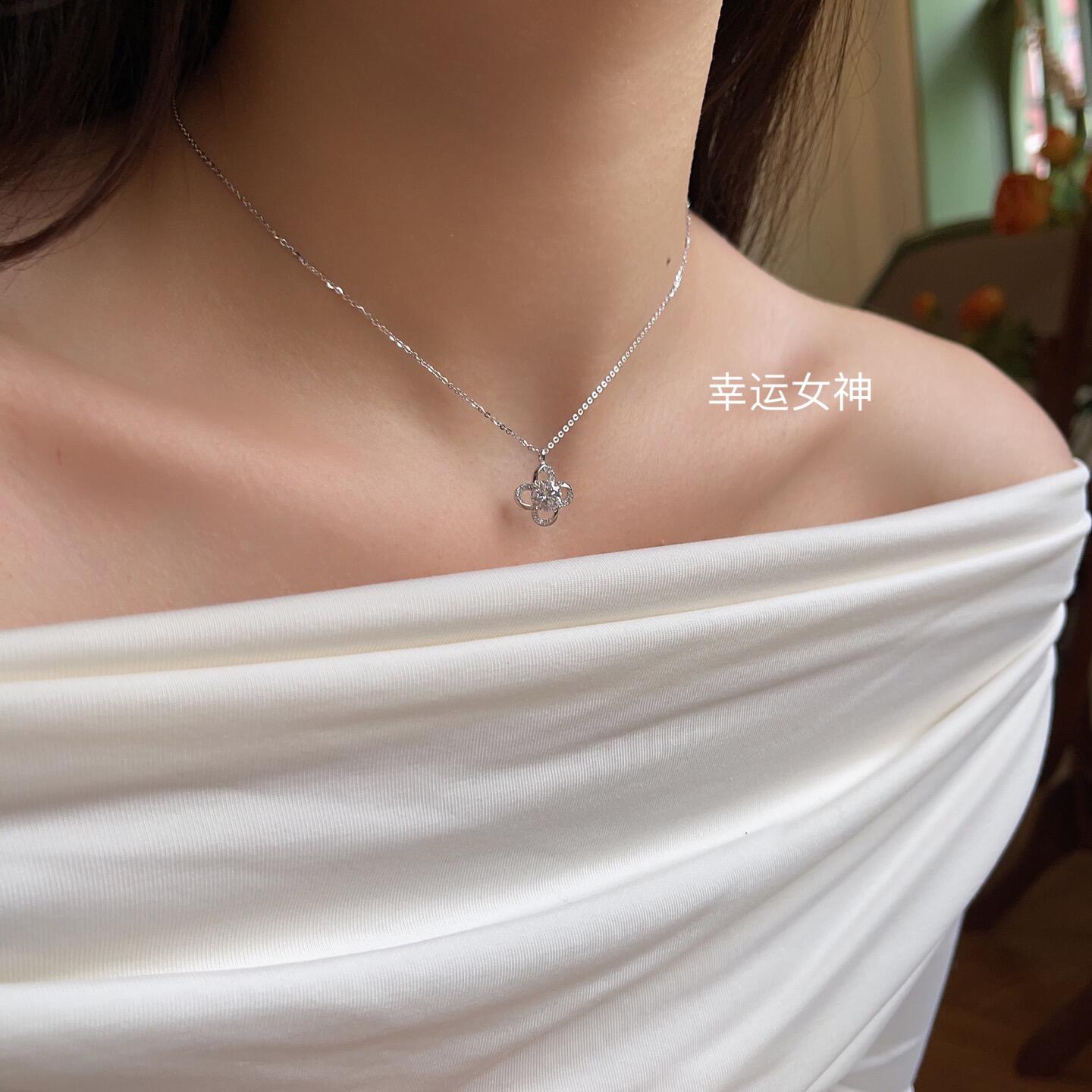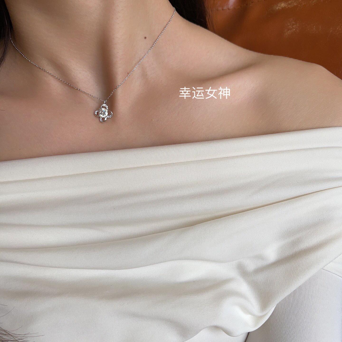 Ai Lu cold style high-grade temperament cold style lucky goddess Diamond S925 sterling silver clavicle necklace 1015