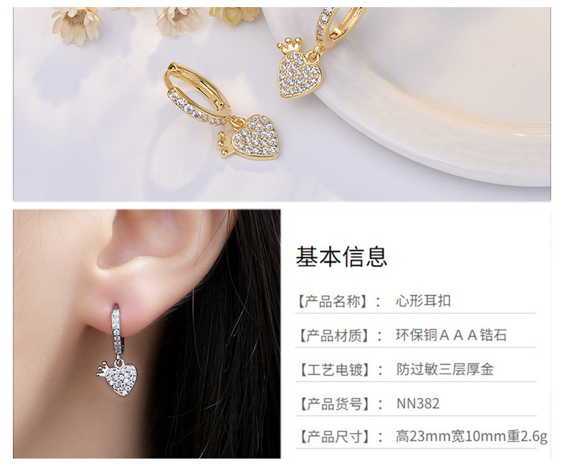 Color: NN389 (heart-shaped ear buckle) gold plated