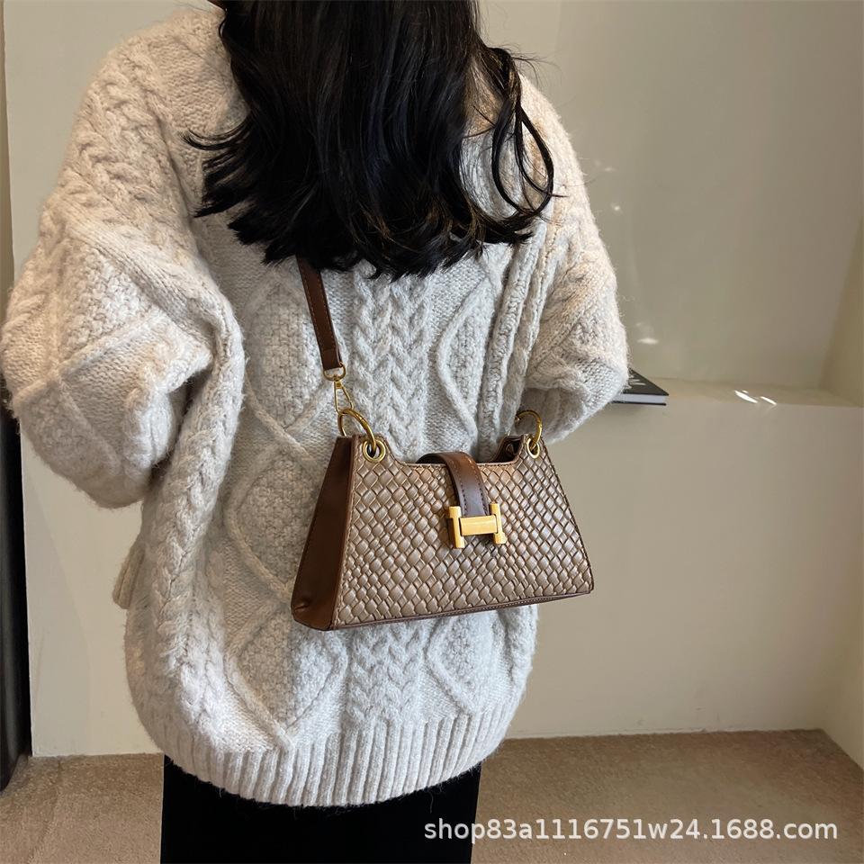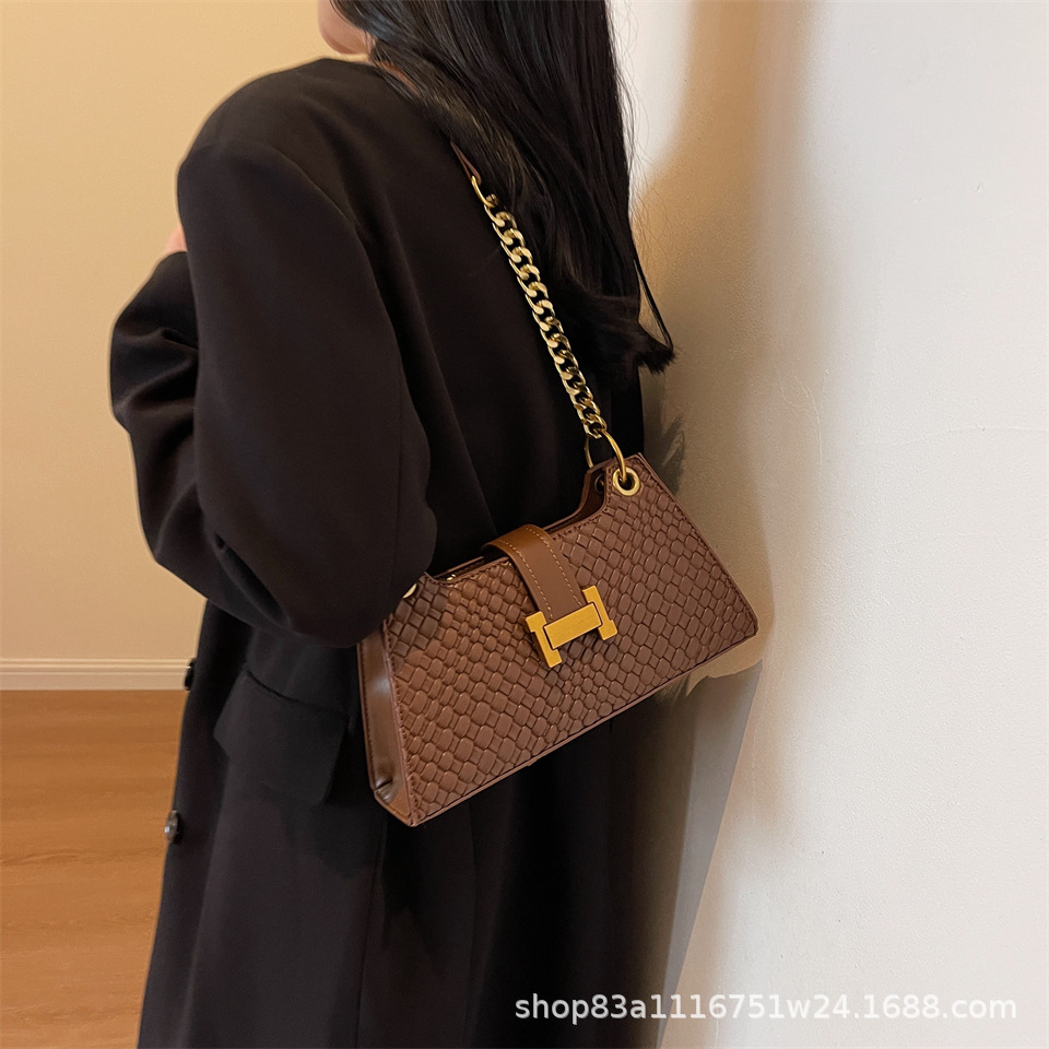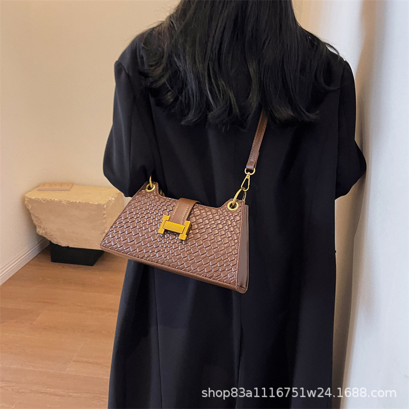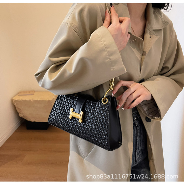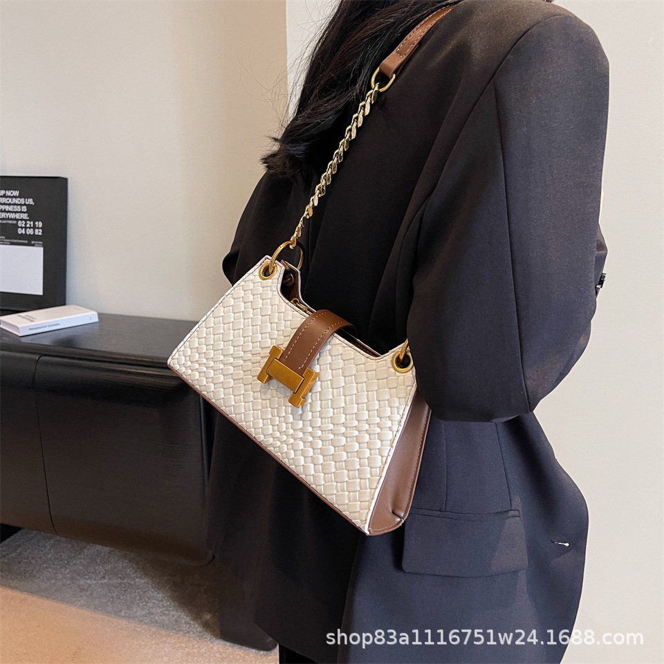 Simple underarm bag women's new H buckle spring and summer crossbody solid color small square bag high-grade stone pattern bag shoulder bag