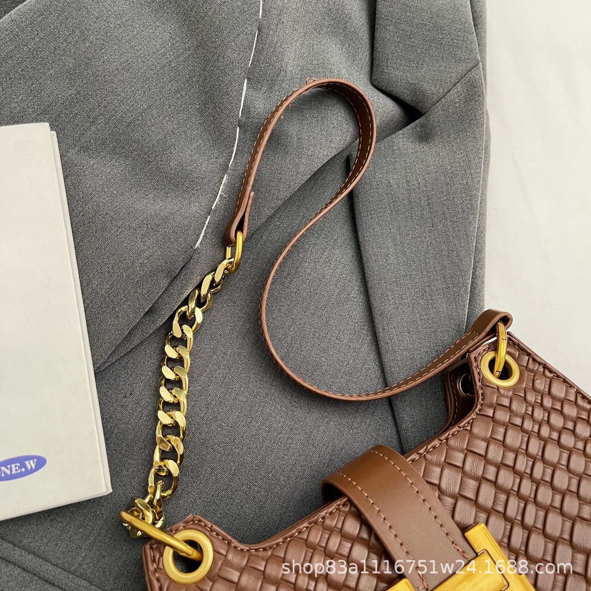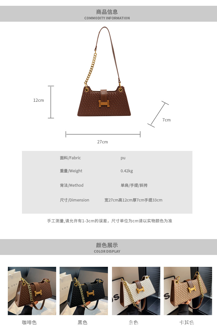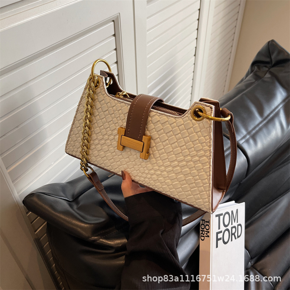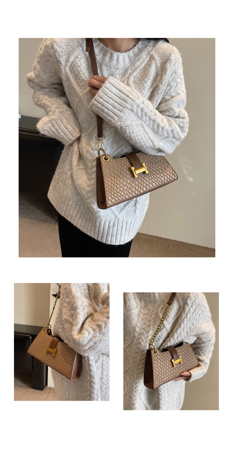Simple underarm bag women's new H buckle spring and summer crossbody solid color small square bag high-grade stone pattern bag shoulder bag