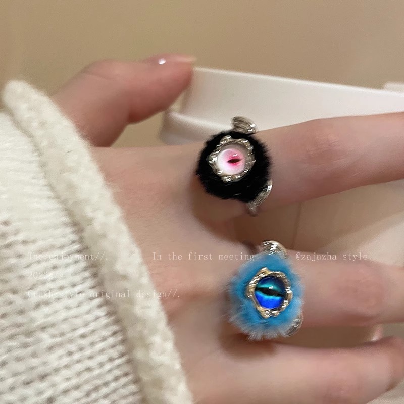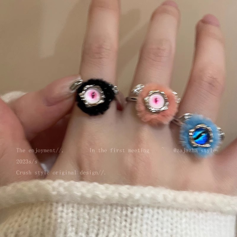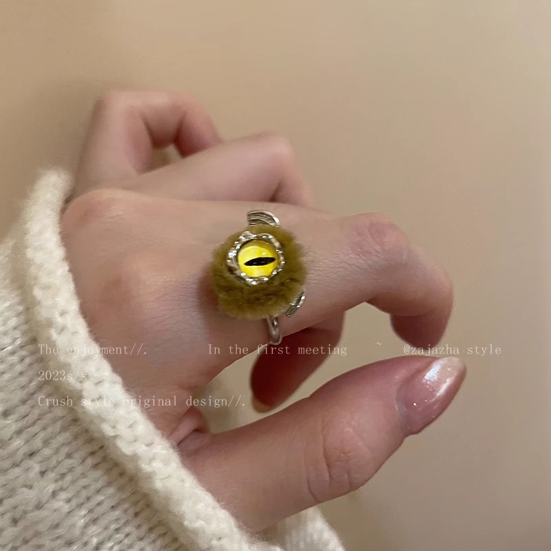 Funny little monster plush ring for women autumn and winter 2023 new niche open index finger ring couple girlfriends ring