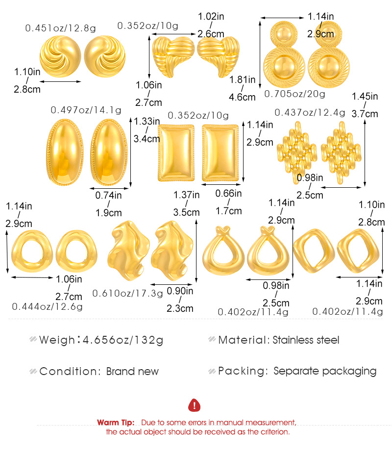 Color: Stainless steel 18k real gold irregular 5827
