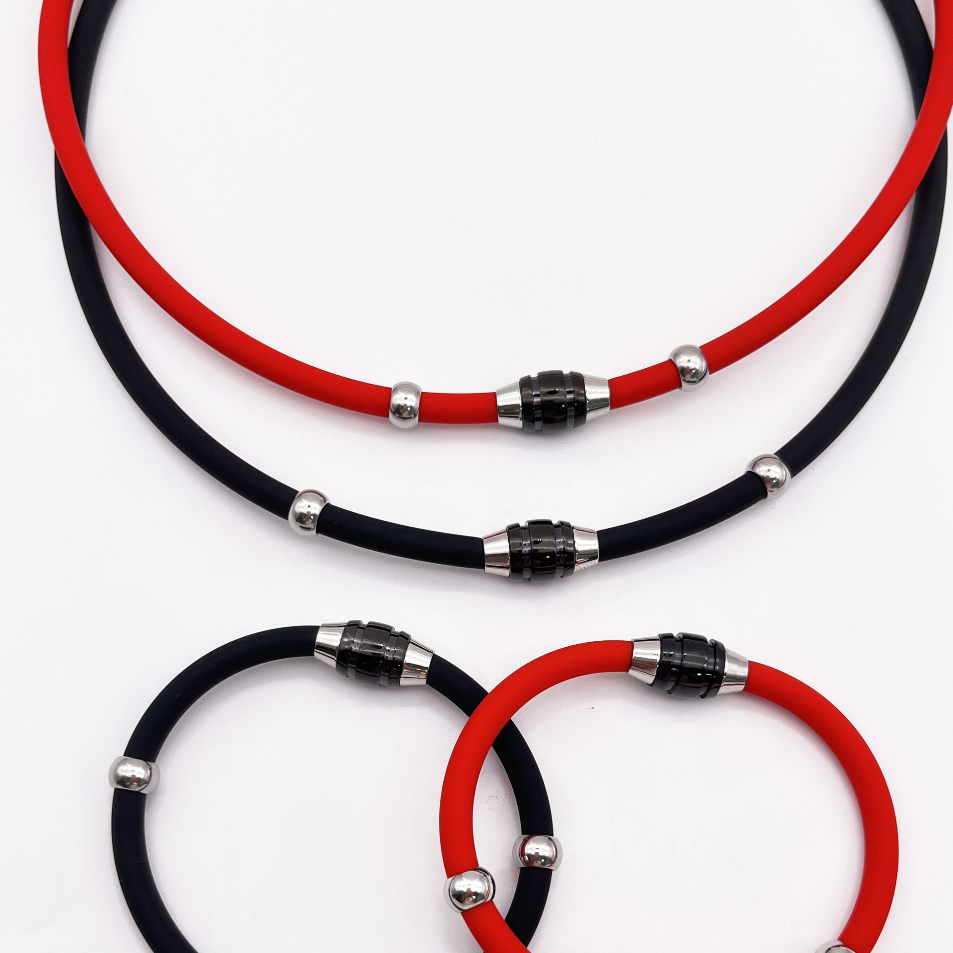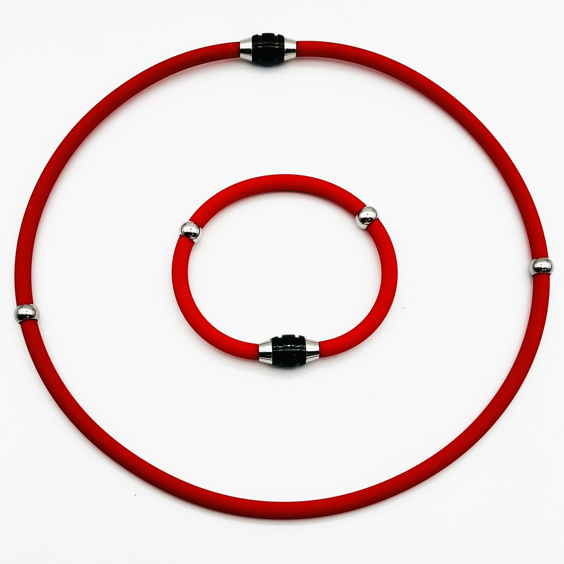 Color: Black magnet-red rope