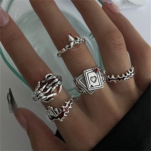 Vintage Heavy Metal Diablo Gothic Wind Ring Hip Hop Horror Python Rose Flower Punk Wind Ring suit Women