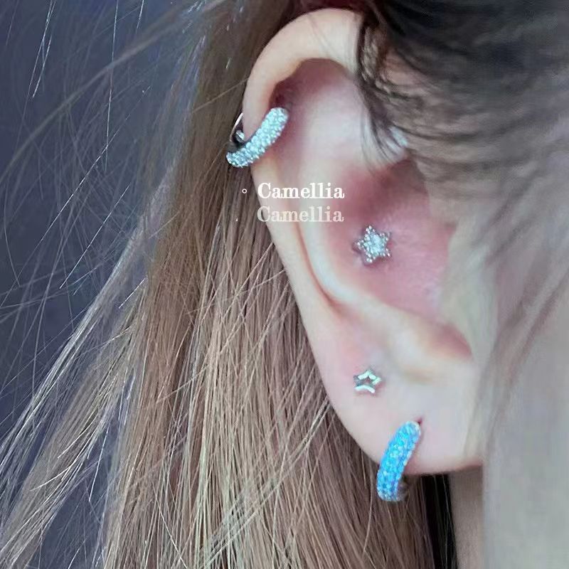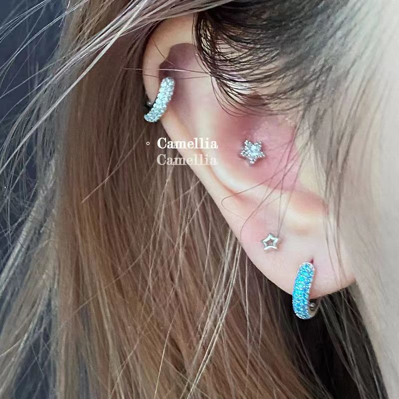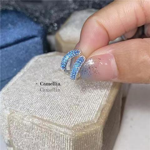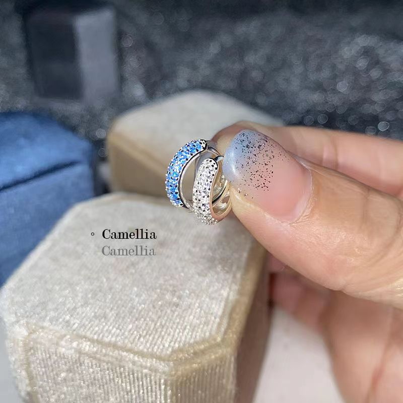 Starry sky flash diamond ear buckle Blue Series half ring flash diamond ear ring all-match Fashion full diamond earrings