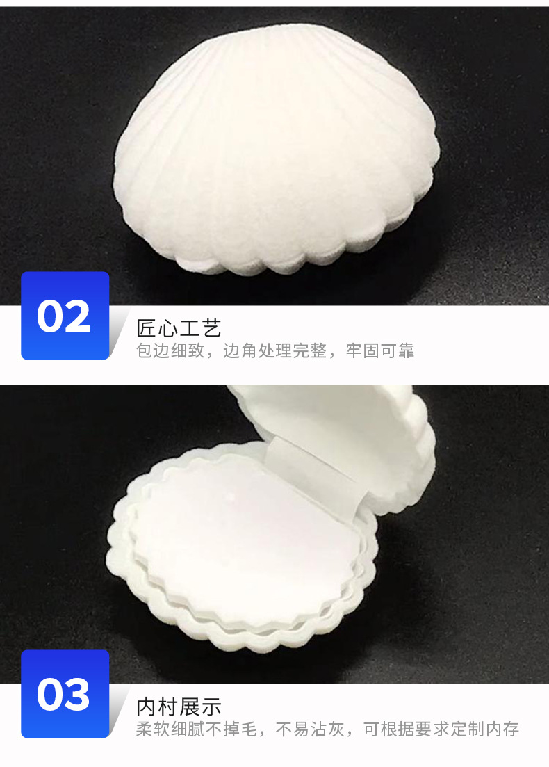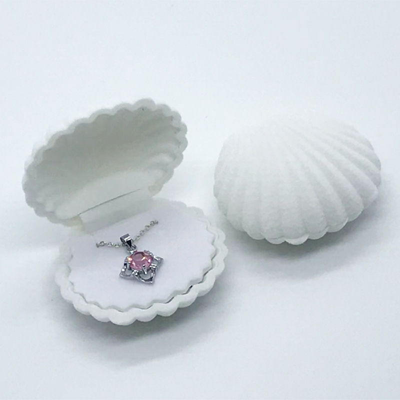 Plastic flocking shell jewelry box vintage girl heart shell stud earrings necklace jewelry storage box velvet gift box