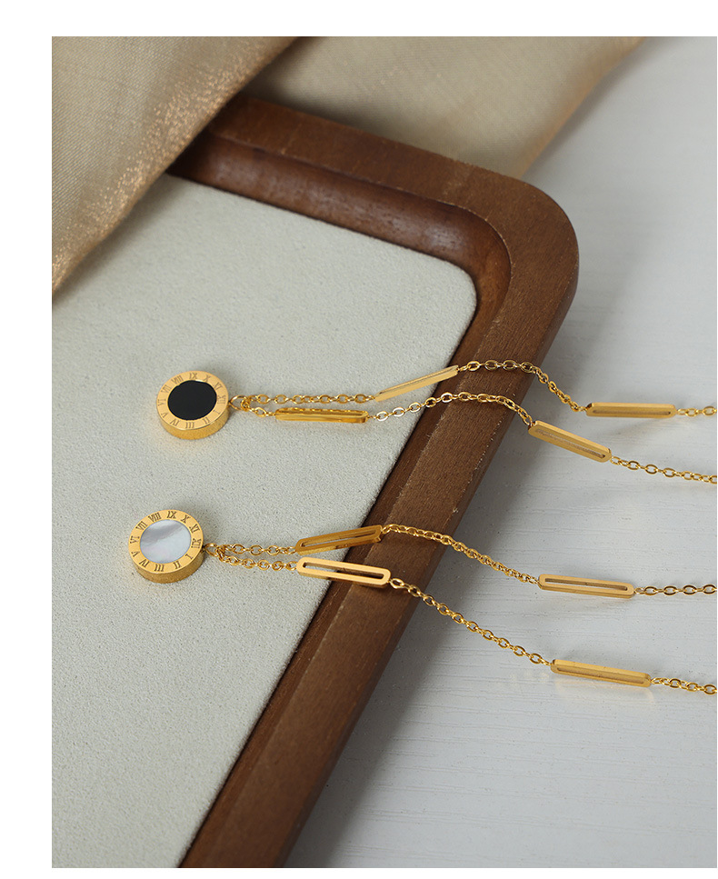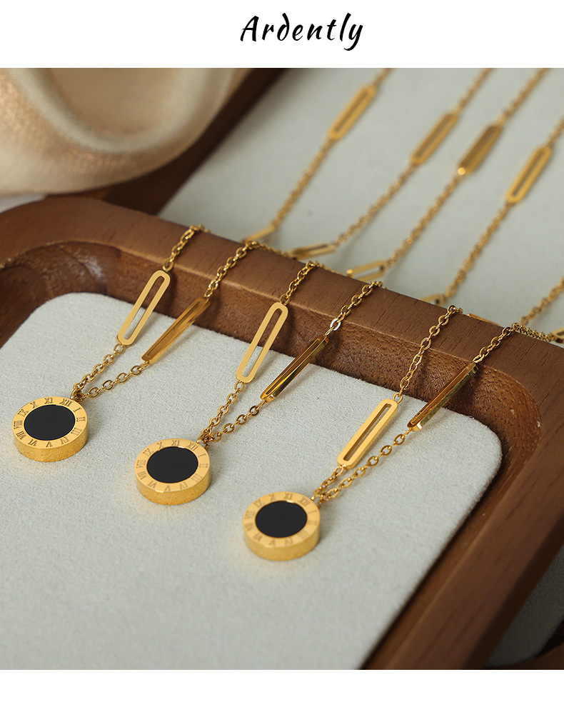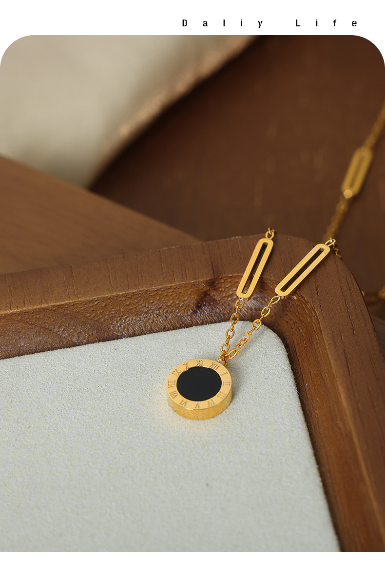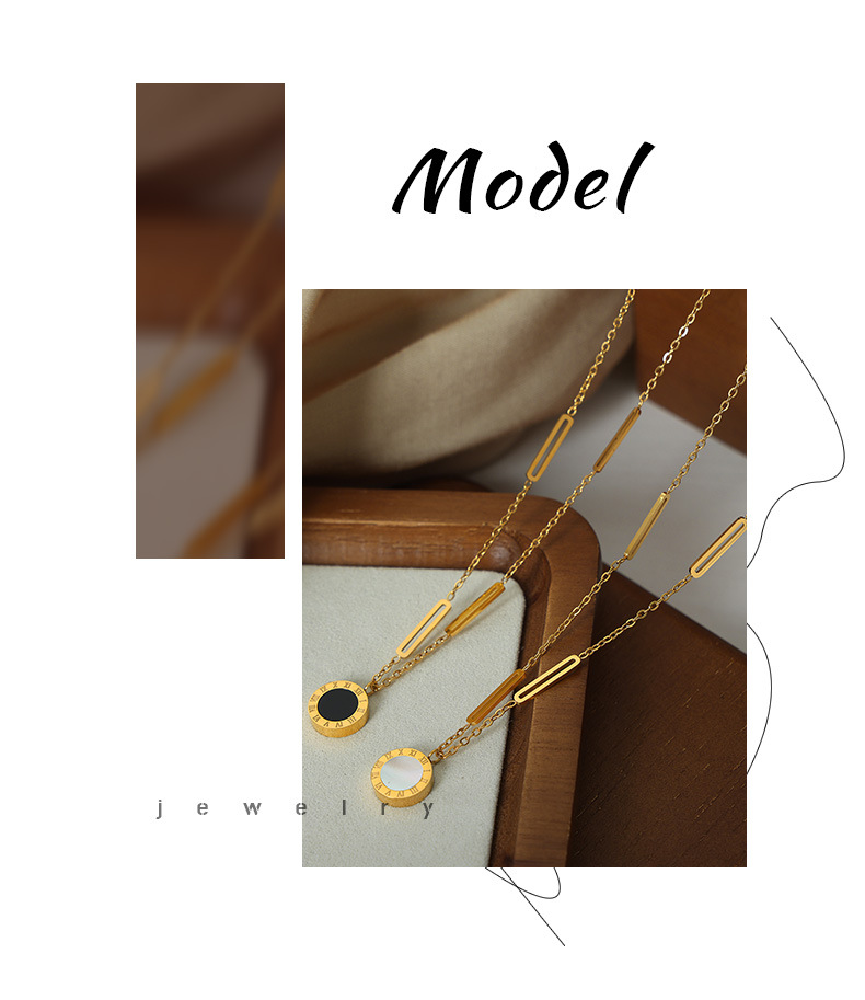 French Niche Cold Style Jewelry Roman Numerals Disc Double-sided Acrylic White Sea Shells Pendant Titanium Steel Necklace