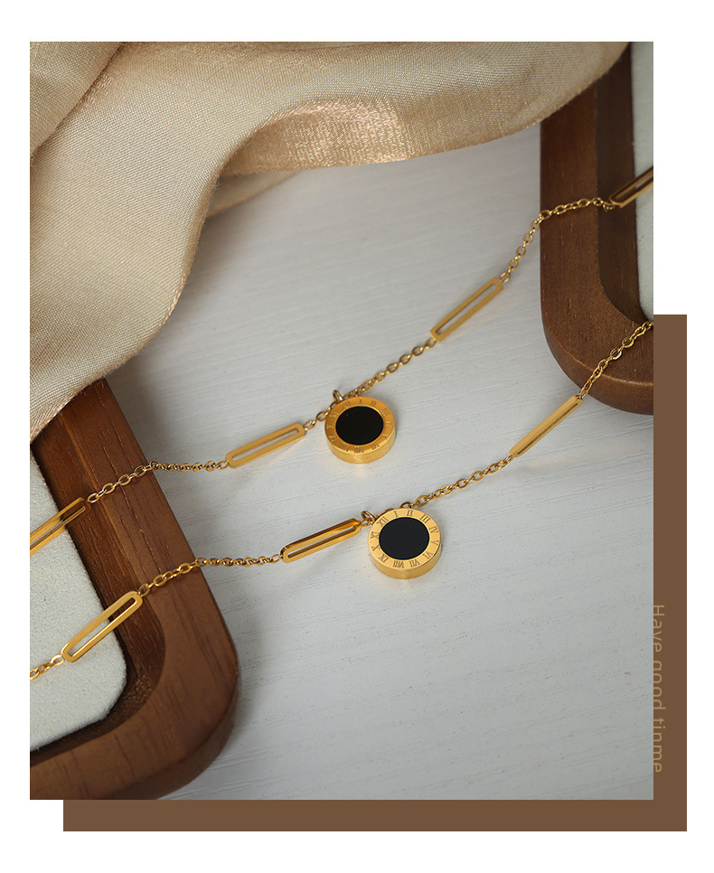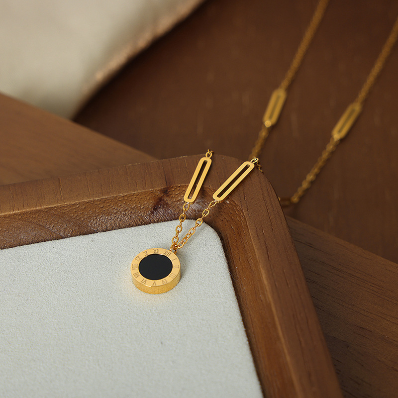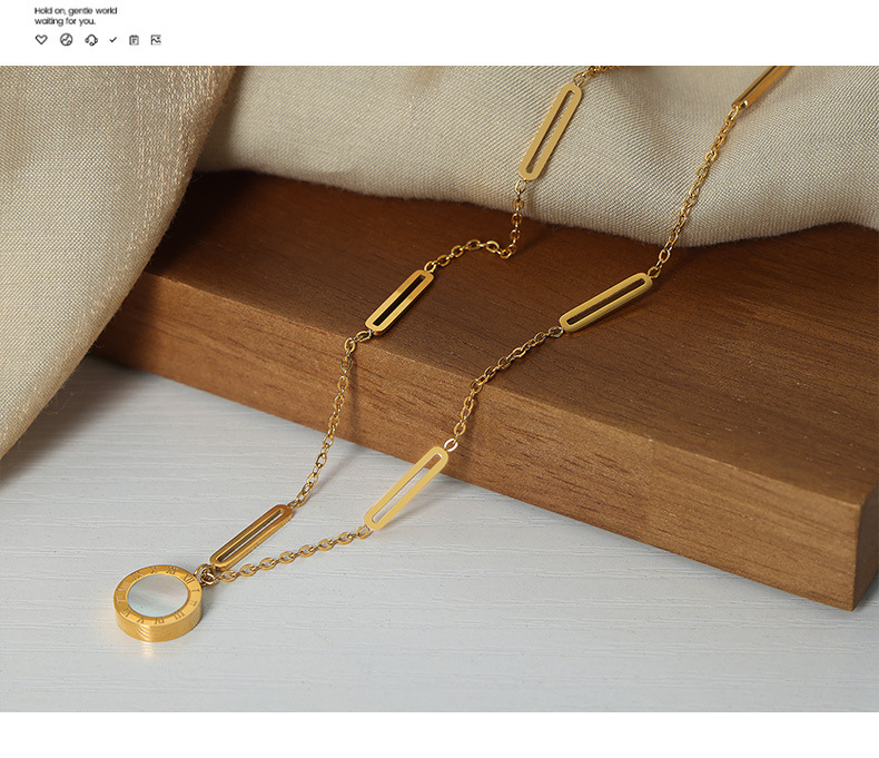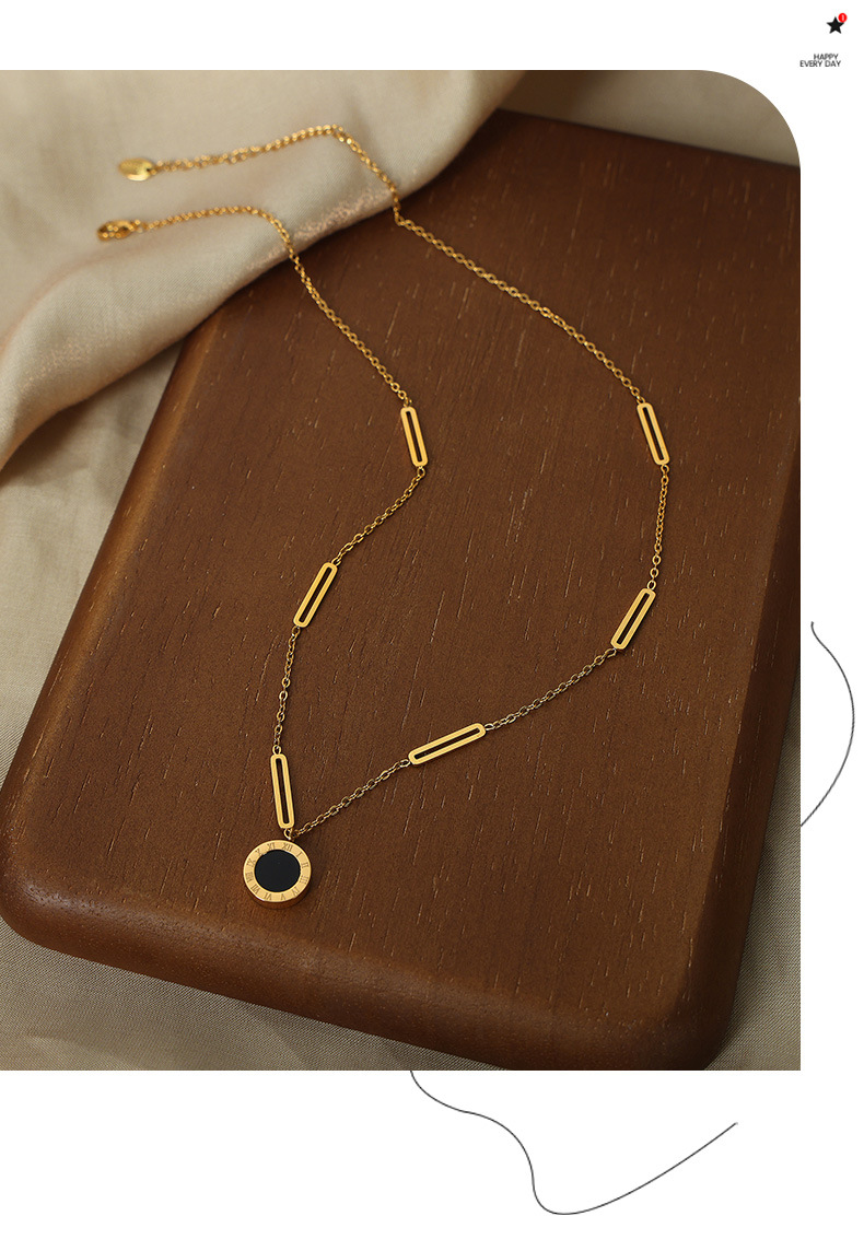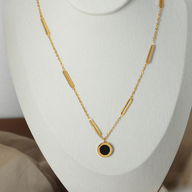 French Niche Cold Style Jewelry Roman Numerals Disc Double-sided Acrylic White Sea Shells Pendant Titanium Steel Necklace