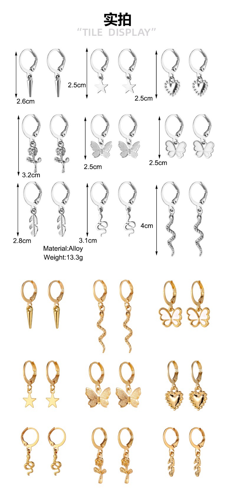 European and American cross-border ins creative simple temperament women's ear jewelry snake butterfly rose ear buckle combination suit 9-piece set