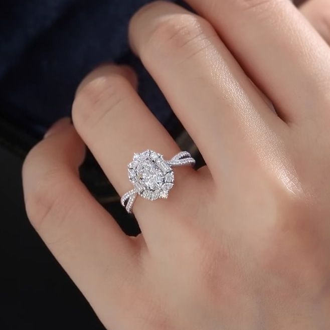 Luxury Design imitation moissanite Oval pigeon egg carat diamond ring White Gold Group inlaid zircon ring female wholesale