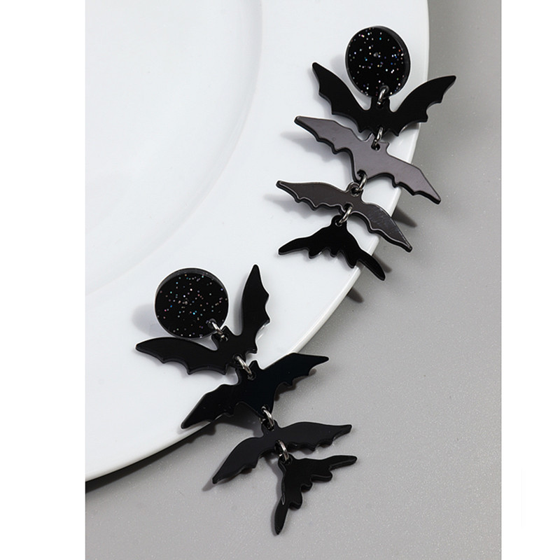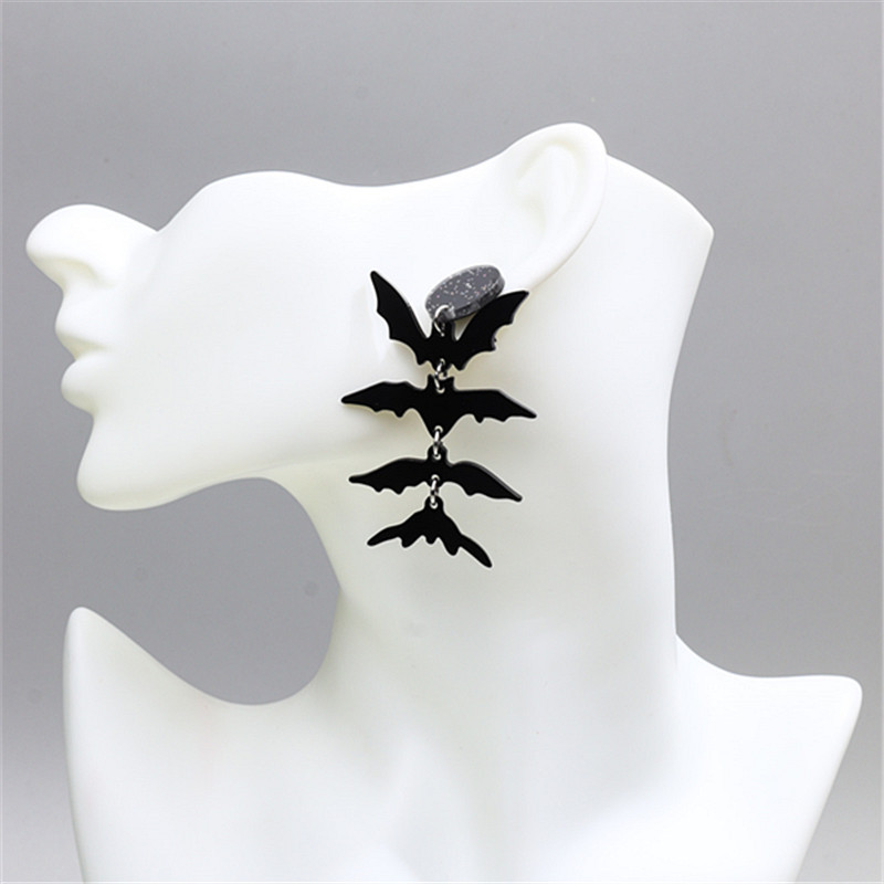 European and American cross-border dark wind exaggerated Halloween horror earrings acrylic special-shaped bat earrings
