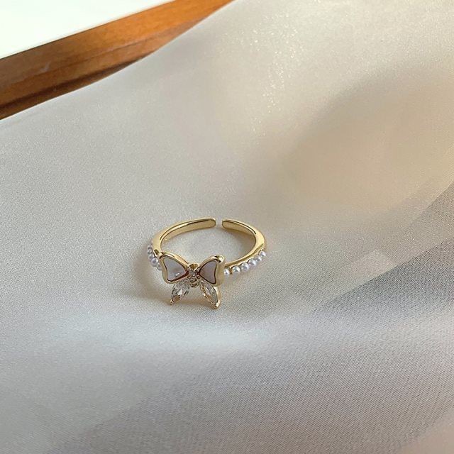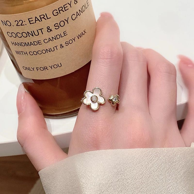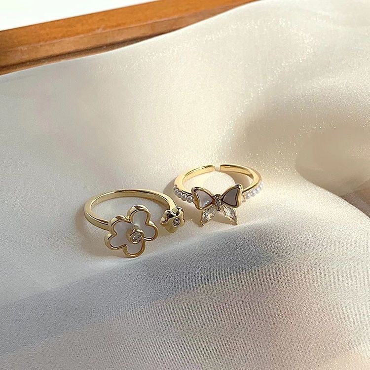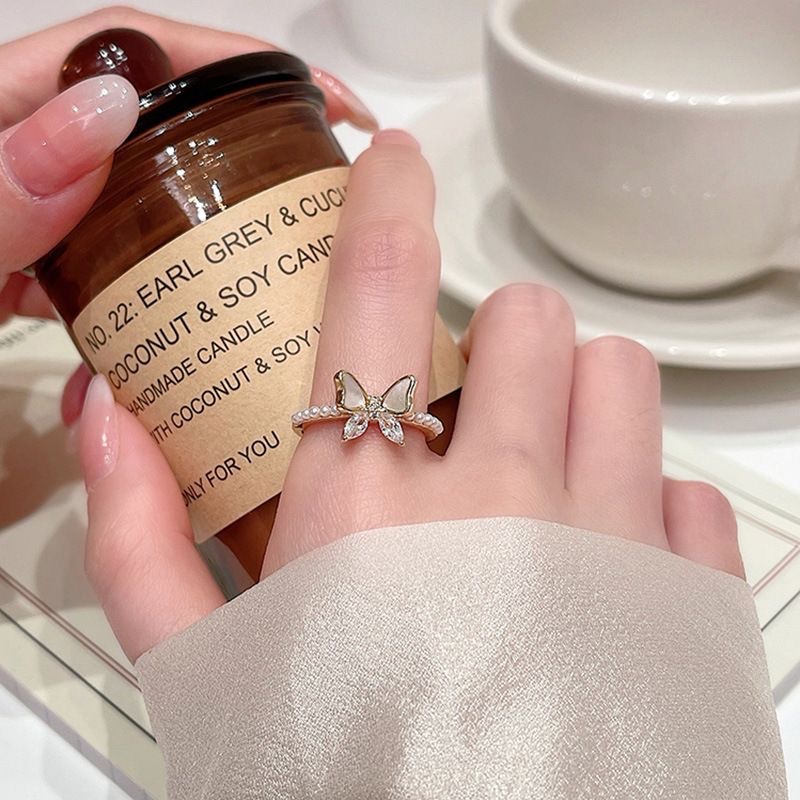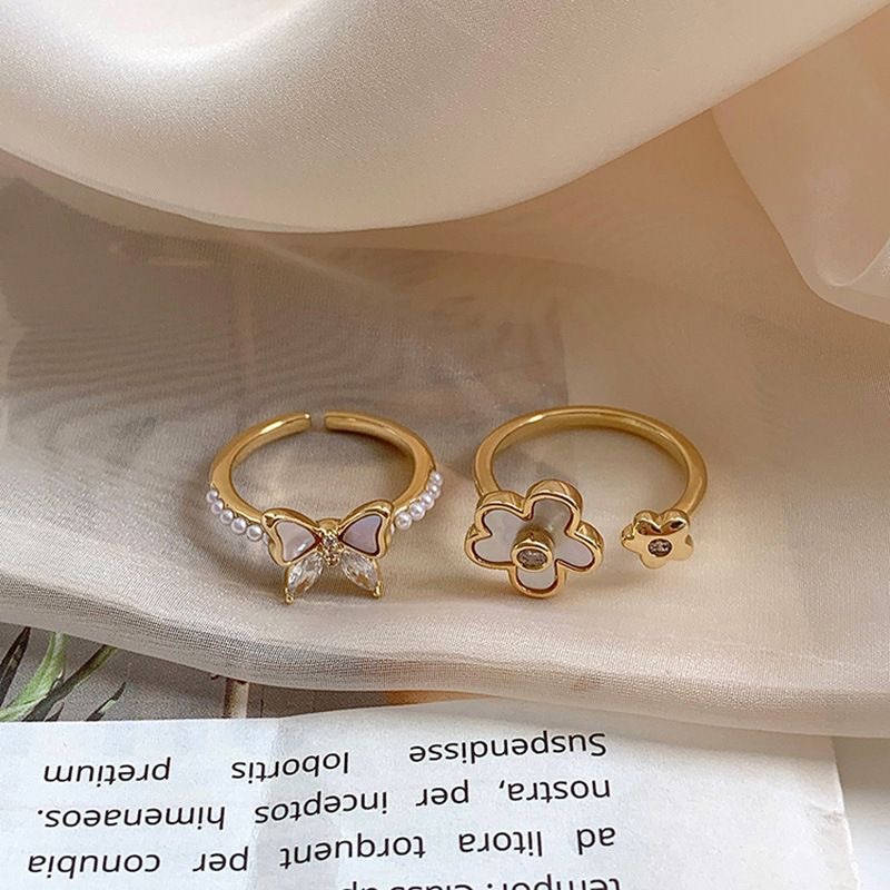 New Trendy Drip Glaze Flower Butterfly Zircon Ring Women's Light Luxury High-End Design Temperament Sweet Open Ring