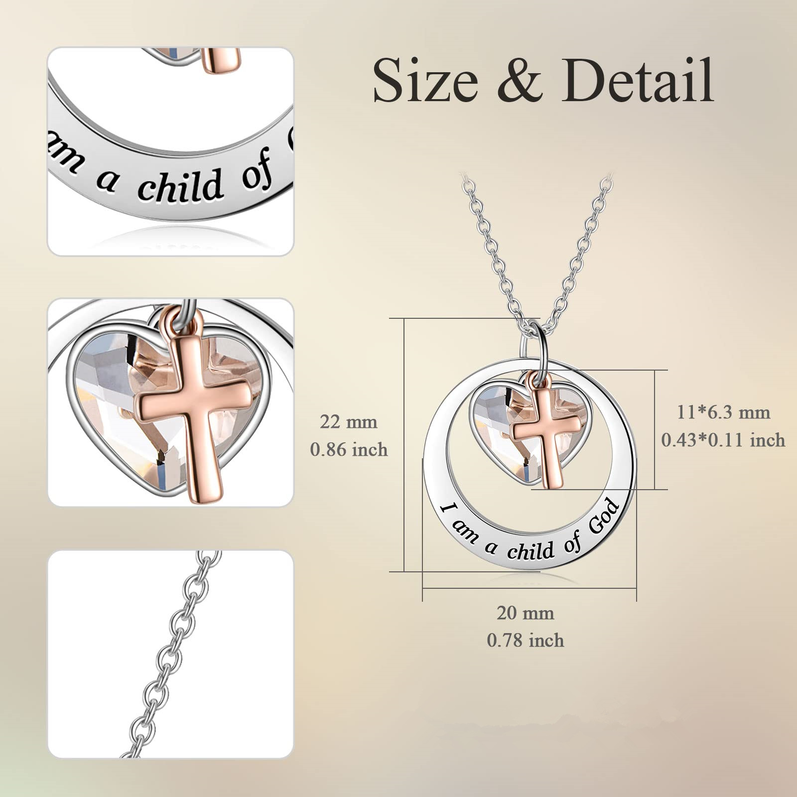 Charm Color Jewelry Stainless Steel Necklace Double Color Silver Rose Gold Faith Hope Love Cross Mustard Seed Pendant Necklace