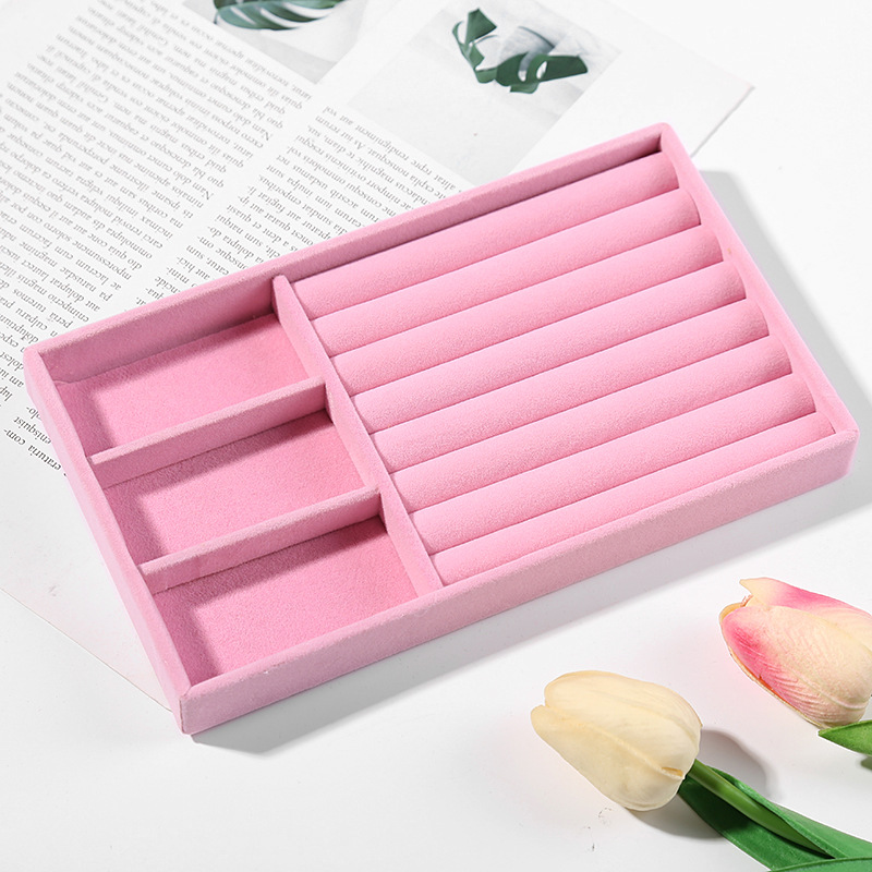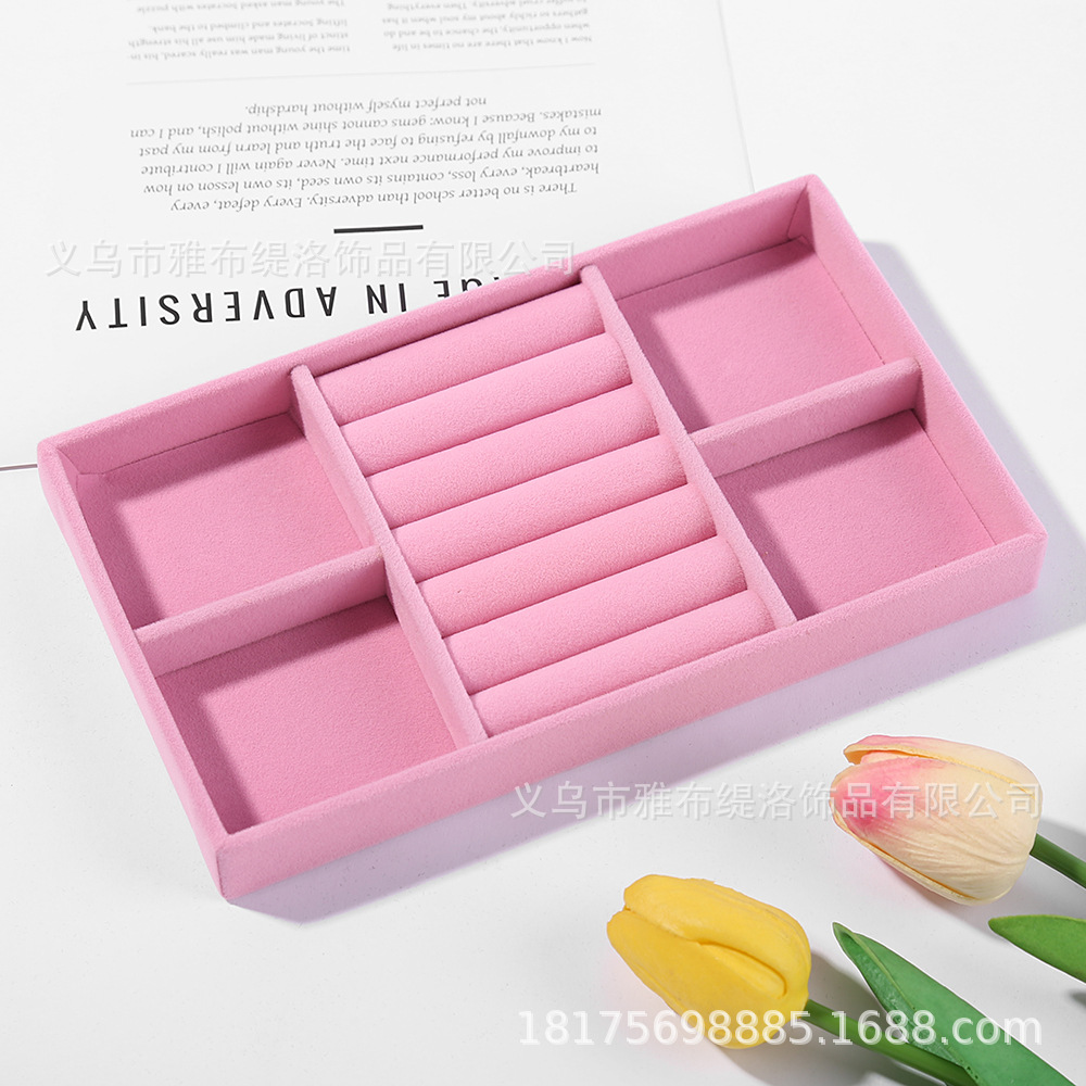 Pink jewelry box earrings necklace ring necklace household flannel storage box jewelry display plate factory direct supply