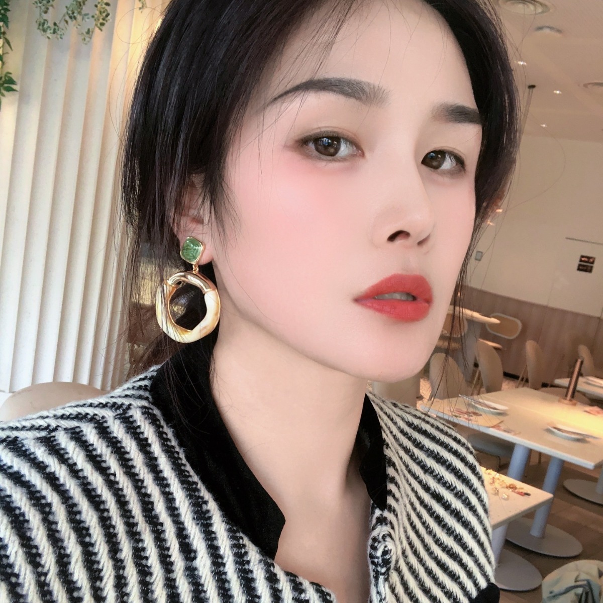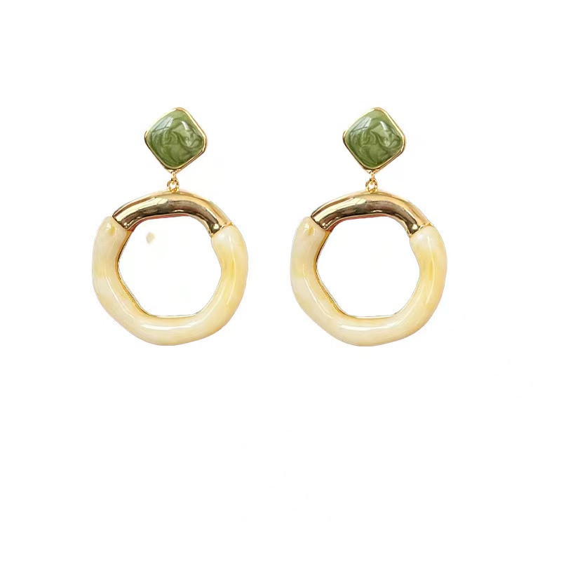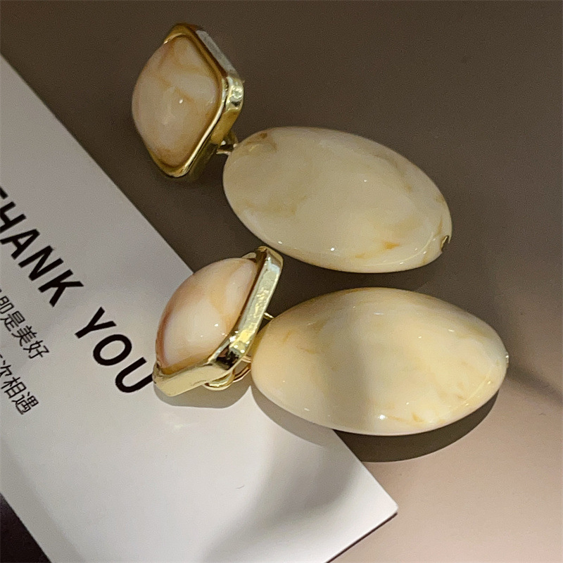 Niche Retro Maillard Ivory White Painting Glaze Large Earrings Fashion Personality Trend Alien Ear Studs Ear Jewelry