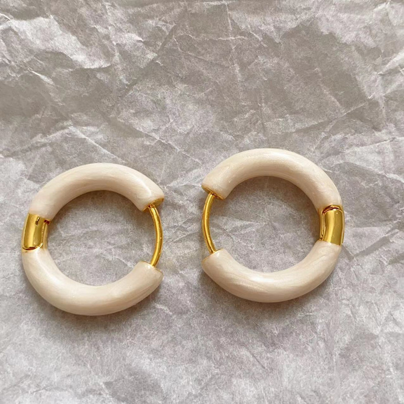 E0255 Maillard Ivory White Painting Glaze Large Earrings