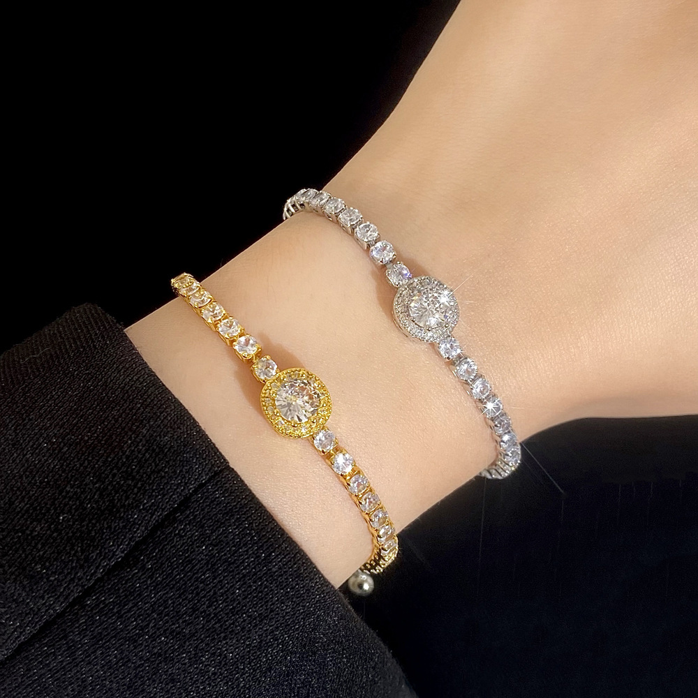 Color: D-54 silver round zirconium bracelet-real gold plated