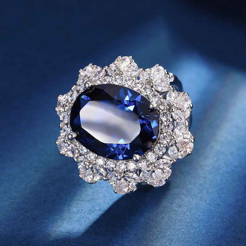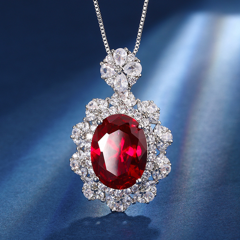 Zhuang Sheng jewelry copper gold-plated European and American simulation color treasure red corundum blue pointed crystal high-grade pendant suit 12*16