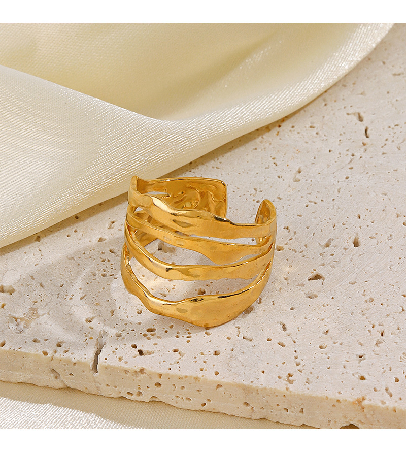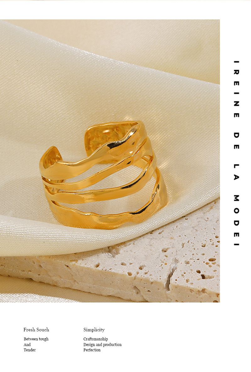 European and American popular stainless steel line ring personality hip hop irregular shaped gold plated open adjustable ring female