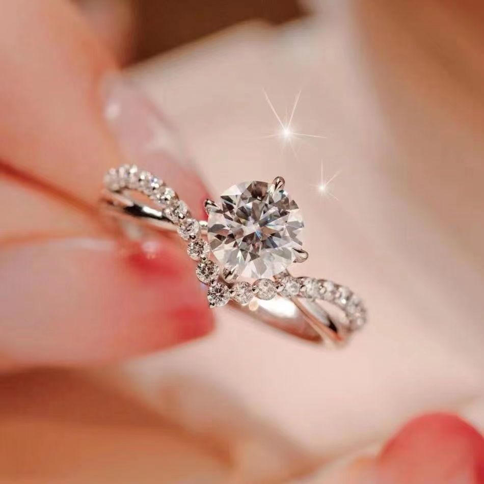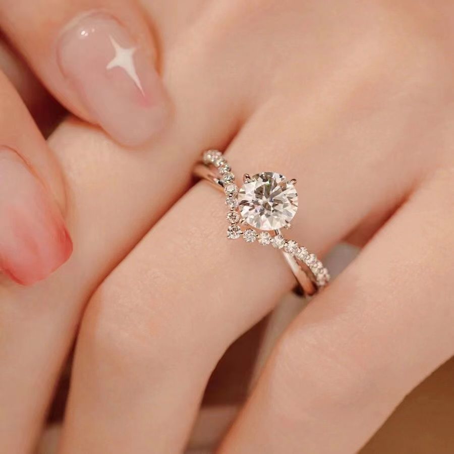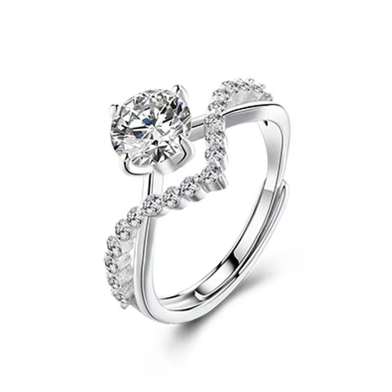Coronation for love couple ring female four-claw simulation moissanite diamond ring men's and women's 1 karat Crown open ring