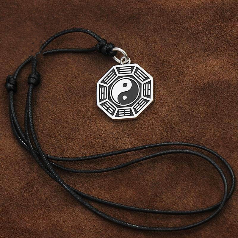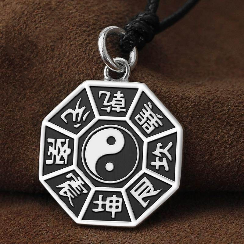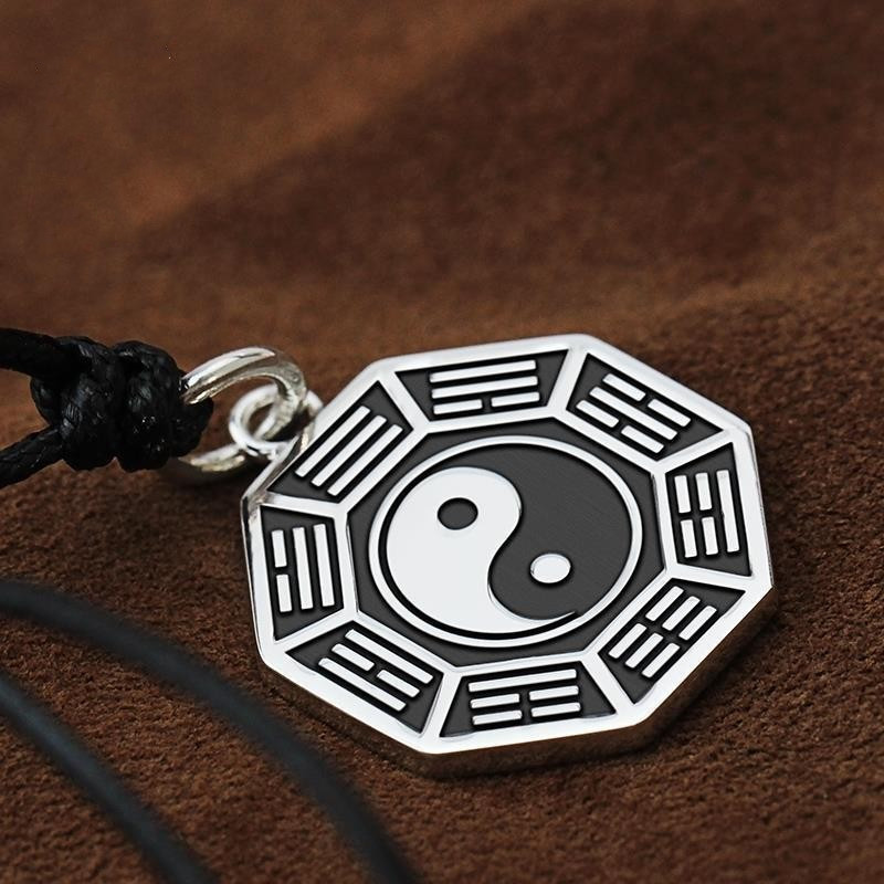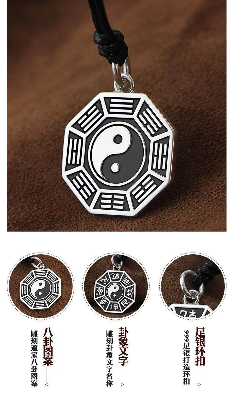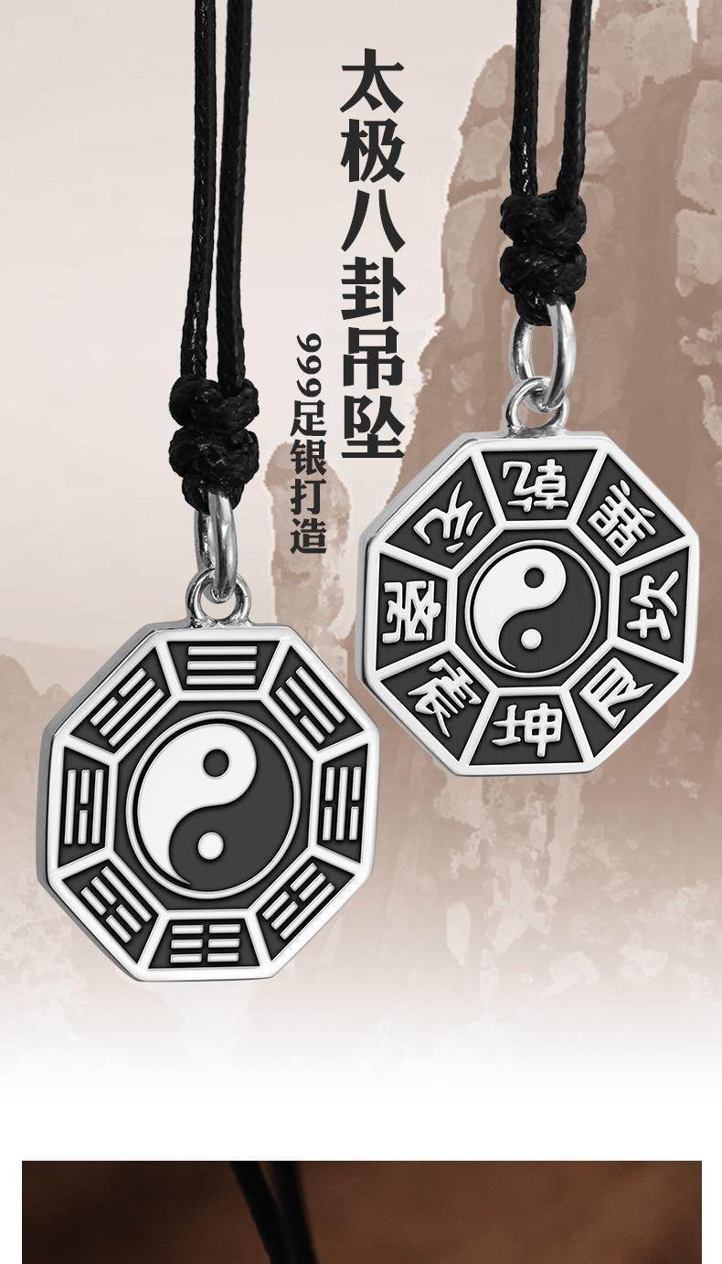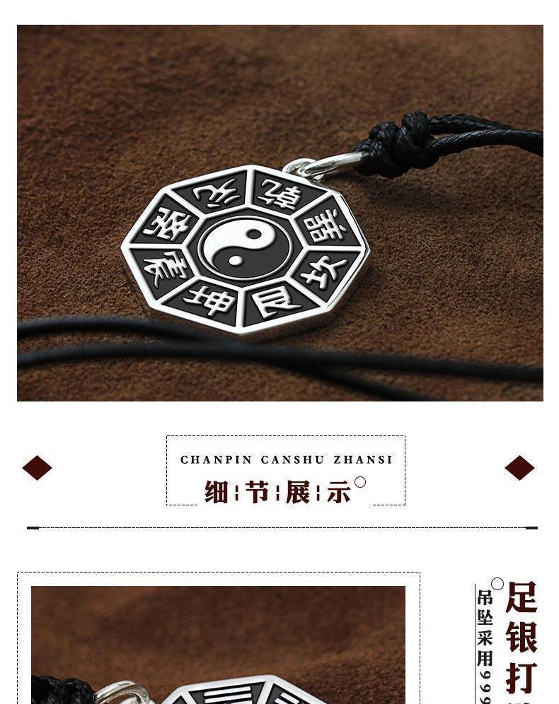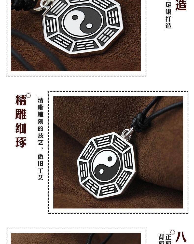 S925 sterling silver Taiji gossip Amulet pendant necklace men's couple double-sided lettering safety card pendant