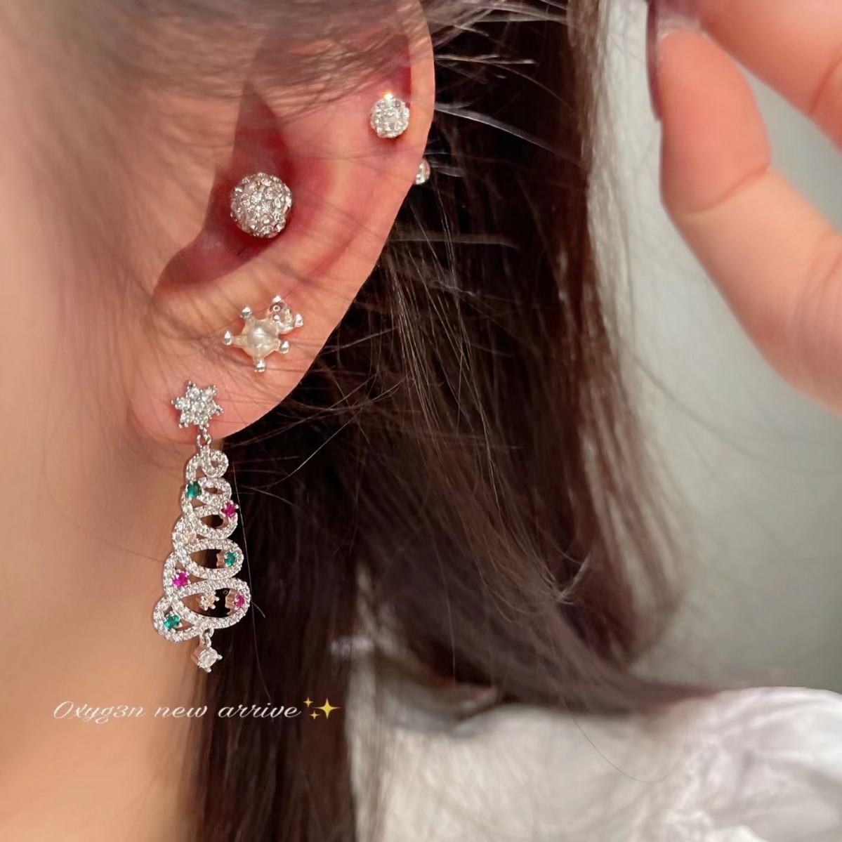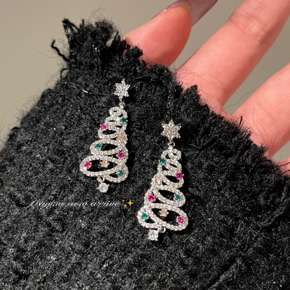 European and American new colorful Christmas tree tassel earrings sweet simple hollow long Christmas accessories star earrings