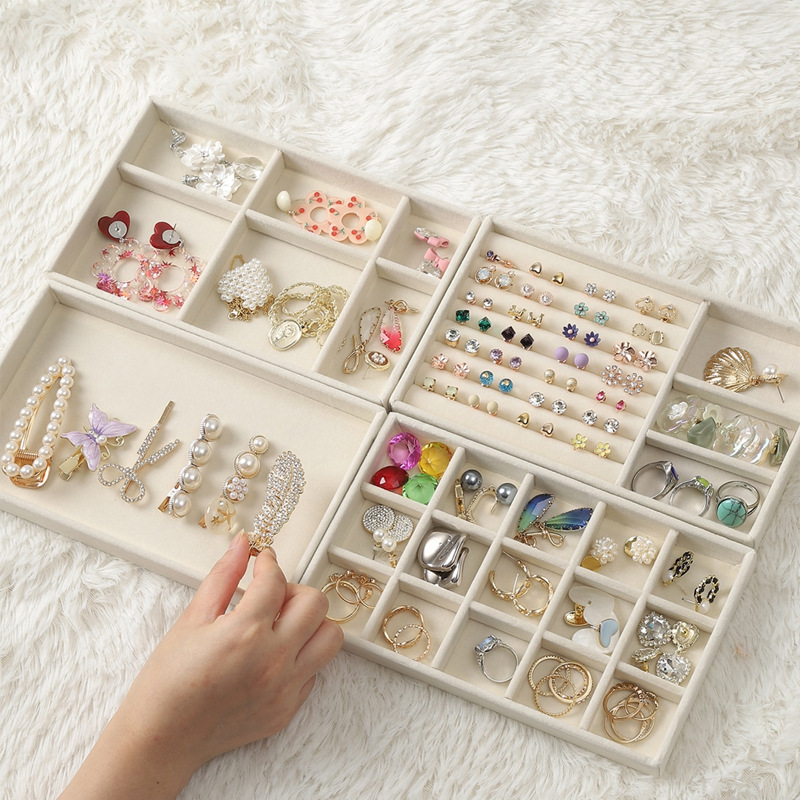 Korean style ins style jewelry box jewelry display four-piece tray jewelry box earrings storage box necklace earrings