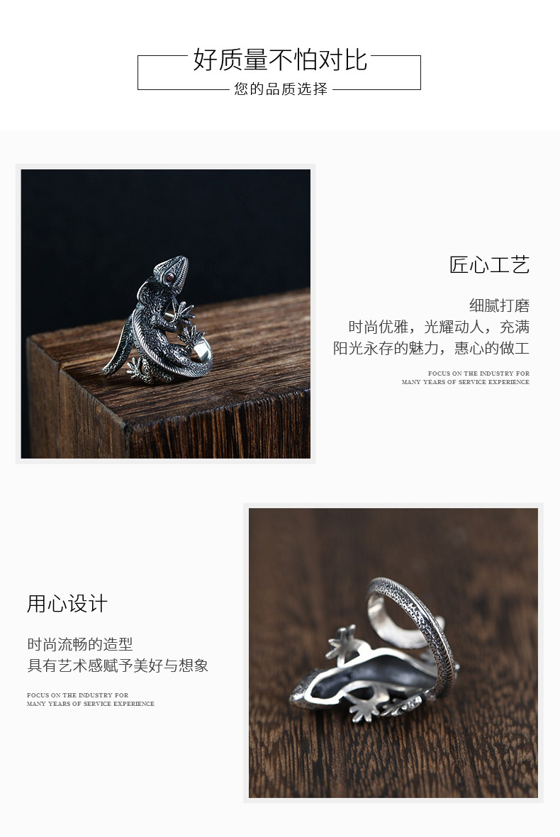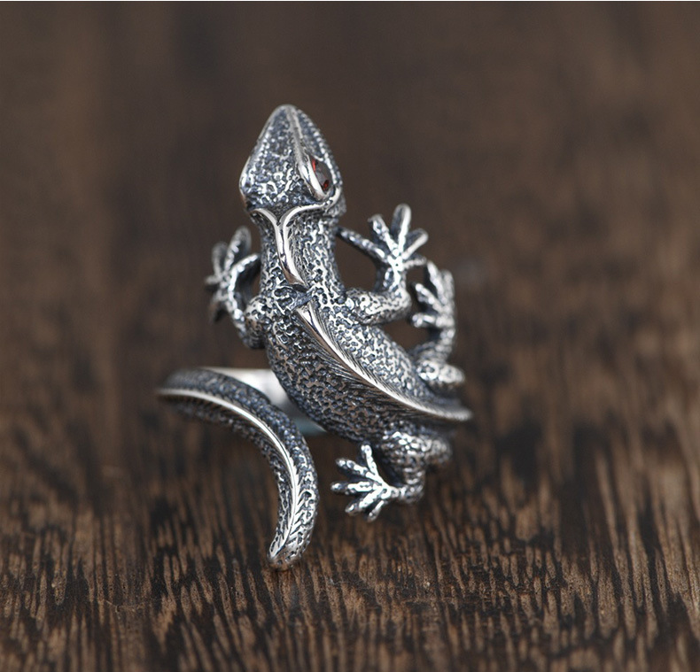 European and American niche design retro lizard ring men's trendy ins style quality fashionable simple index ring in stock